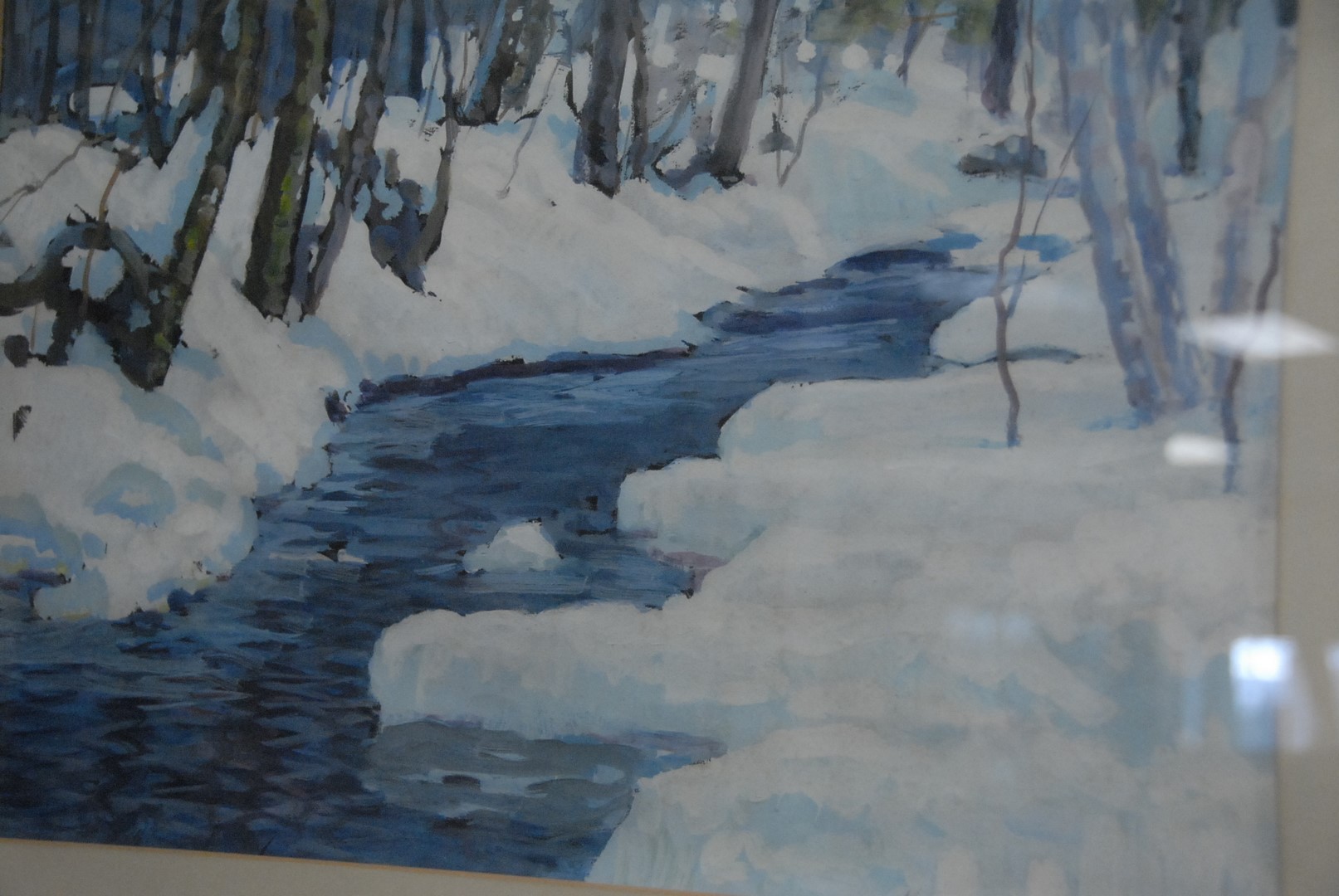 Harry Spiers 1869-1947 WINTER STREAM gouache signed bottom center H. Spiers. 19 x 24