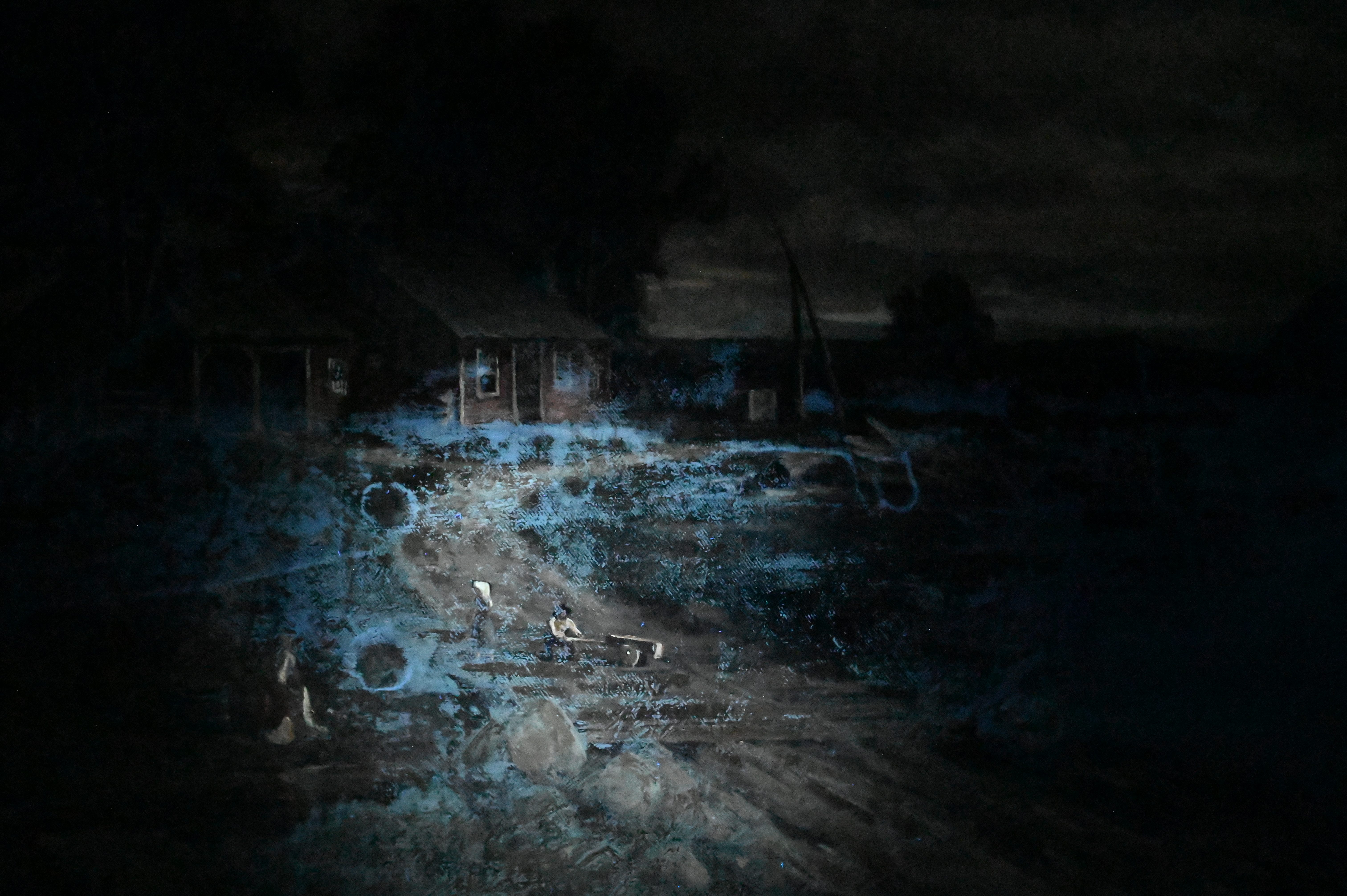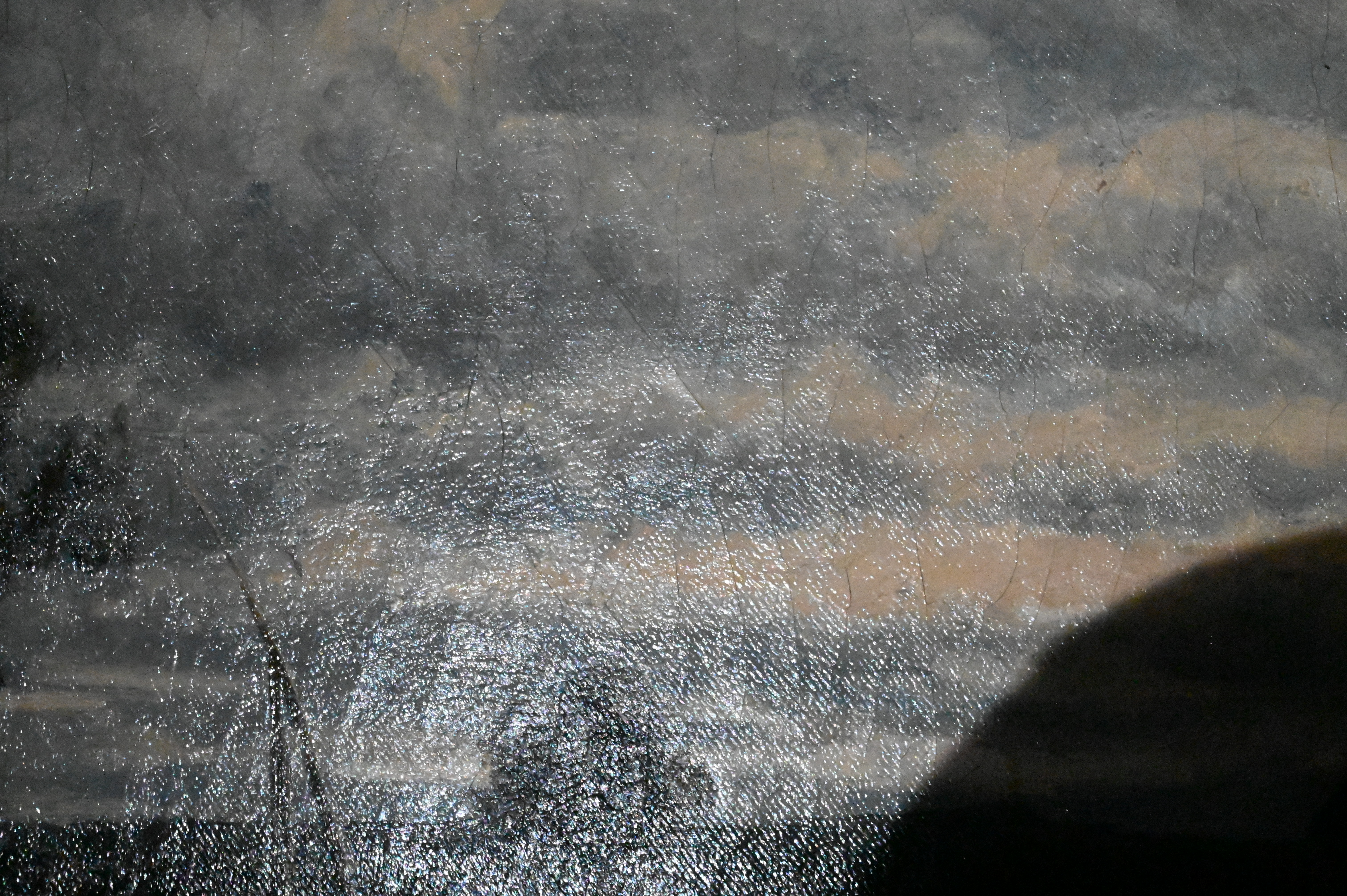 Canvas restretched and relined, varnish. Craquelure. Some inpainting, edgeware and some loss.