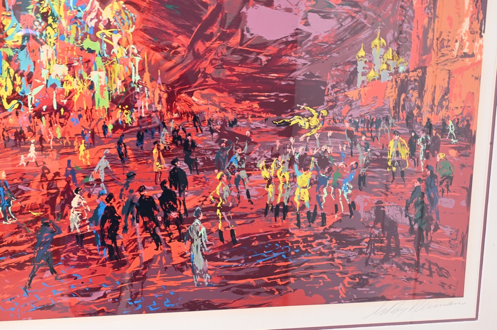 Lot 295: Leroy Neiman (b. 1927), Red Square, serigraph, pencil signed and numbered Leroy Neiman 225/300, 25.75″ x 32.5″. Provenance: Sotheby’s New York tag on verso.