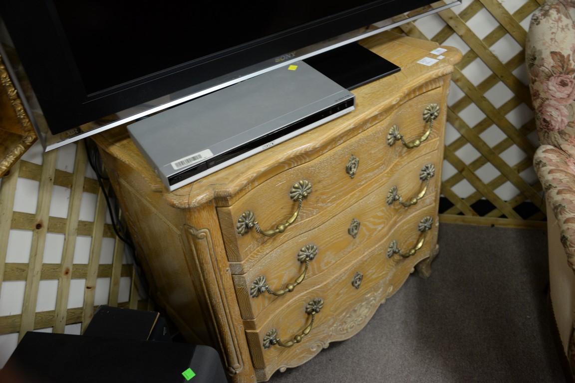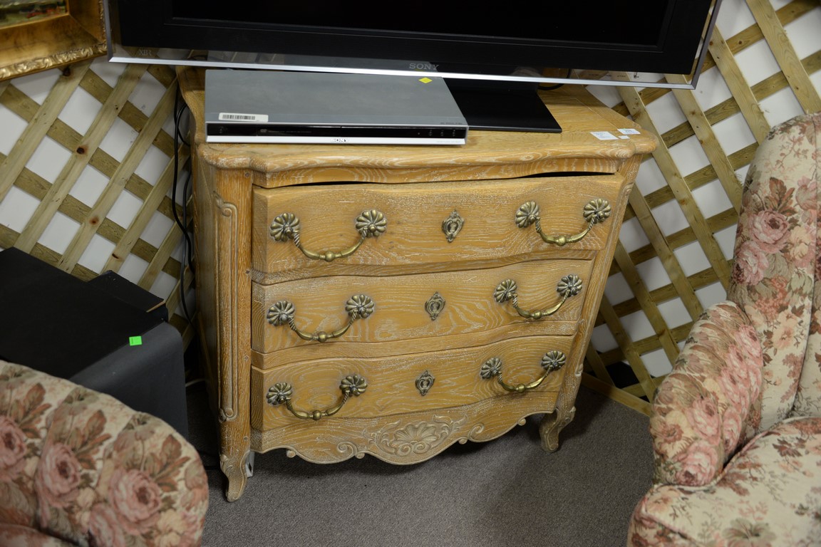 Louis XV style three drawer commode, stamped made in France, ht. 32in wd. 33in.