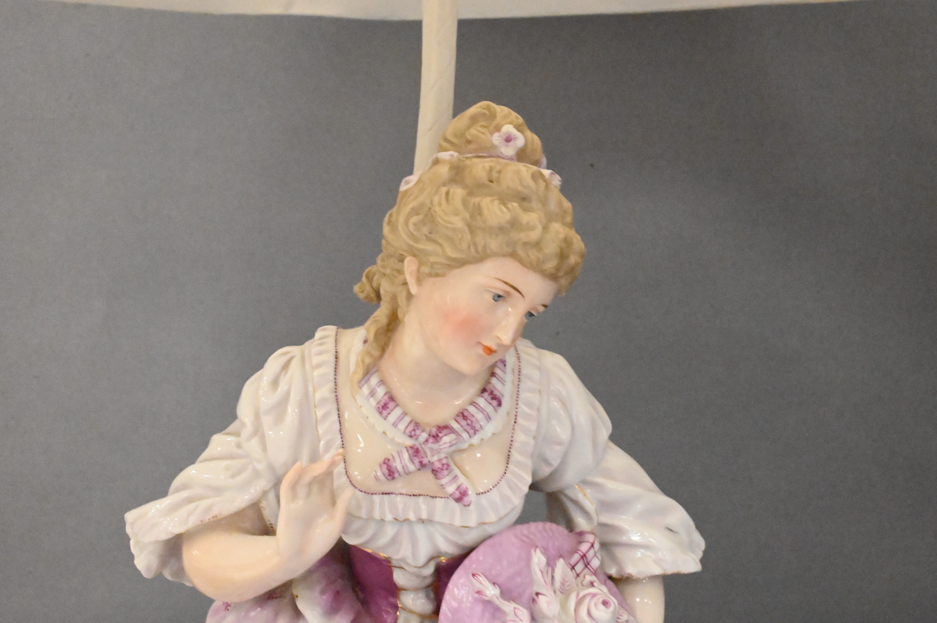 Lot 295: Pair of Porcelain Figural Table Lamps with Custom Shades