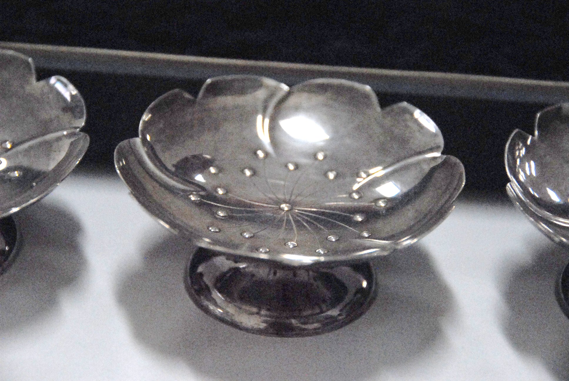 Set of three small Japanese silver footed dishes, in original fitted box.
