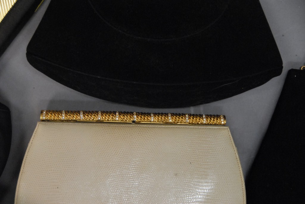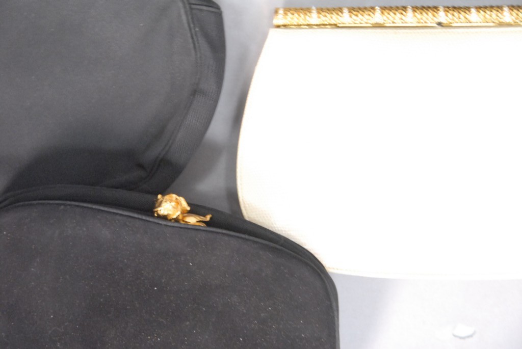 Lot 295: Six purses Koret clutch bag black and gold flower with jeweled clasp, Koret clutch bag black with gold flower clasp, Koret clutch b…