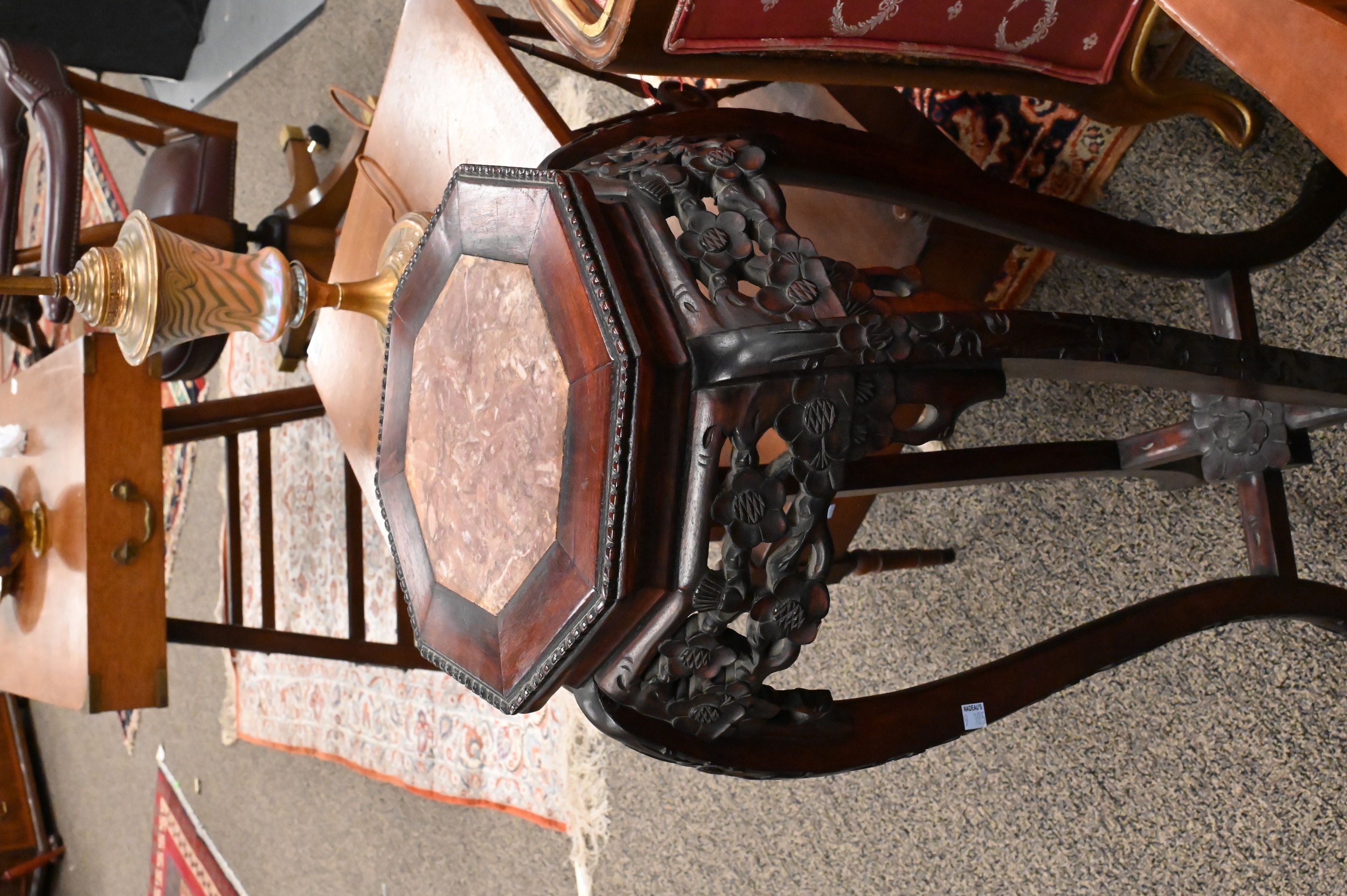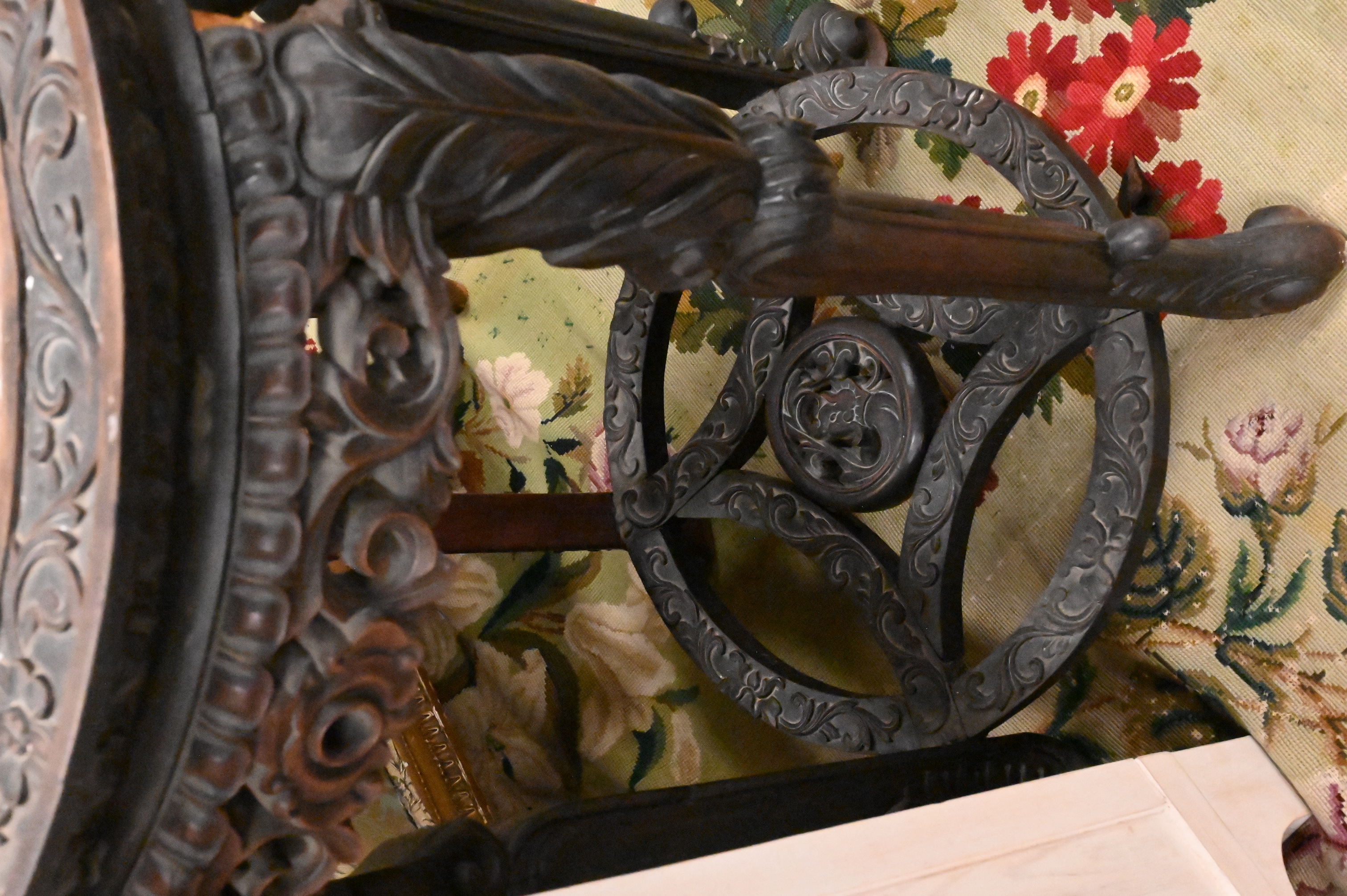 having octogonal shaped tops and floral carving throughout