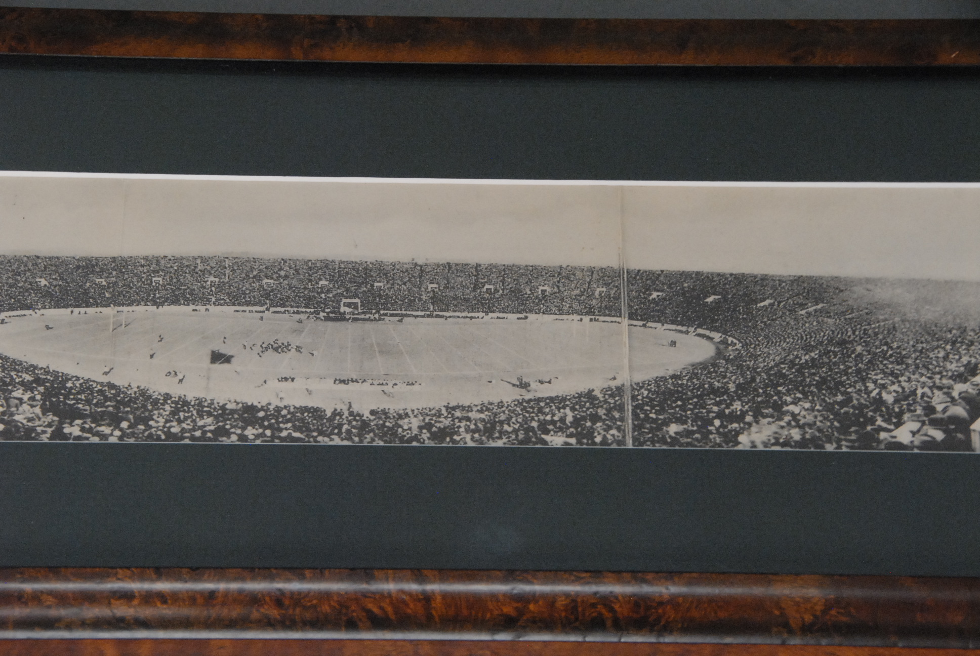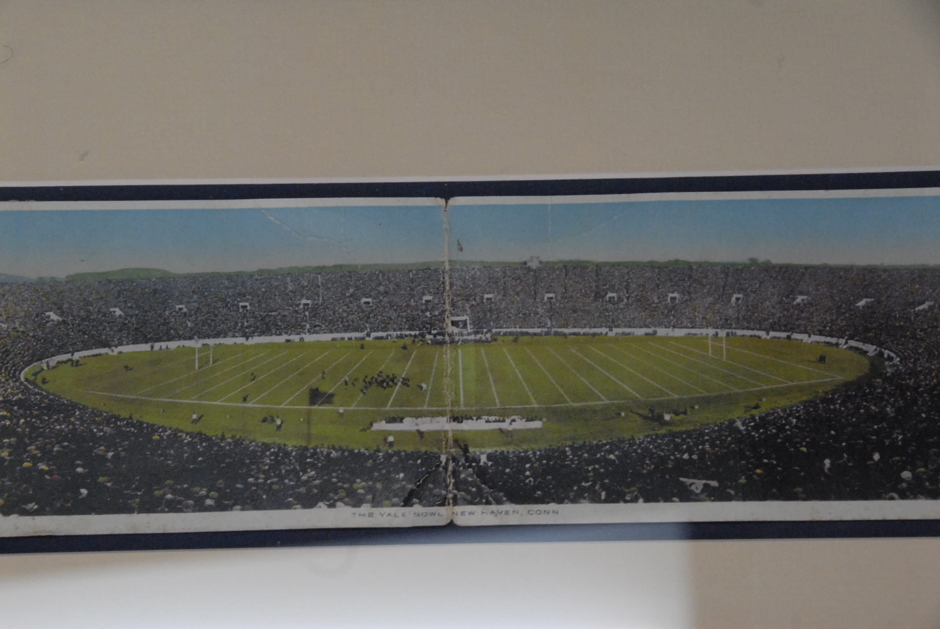 Lot 295: Two panoramic views of Yale Bowl one in color 3 1/2 x 17 and one in black and white 3 1/2 x 16.