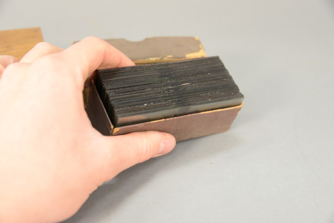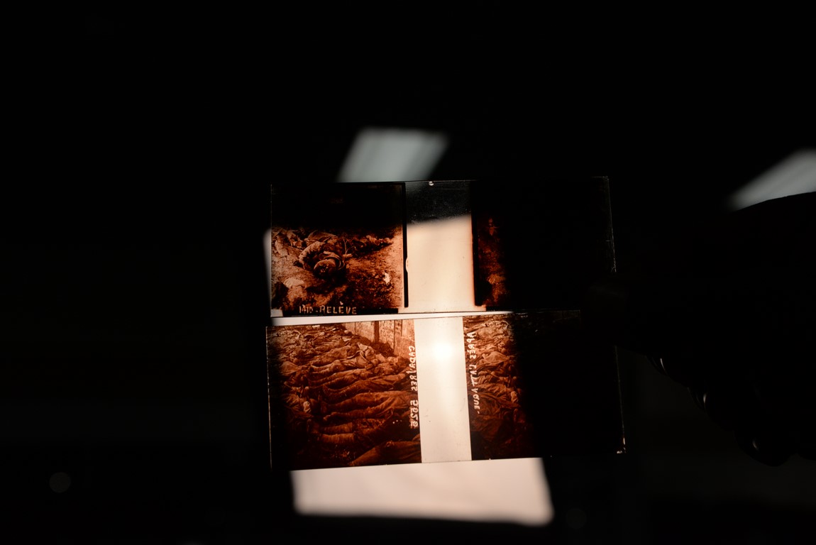 Lot 295: World War I Brentano’s Paris stereo slides with viewer, approximately 40 slides and half of them gruesome scenes, dead soldiers and horses. viewer: lg. 4 1/2 in.