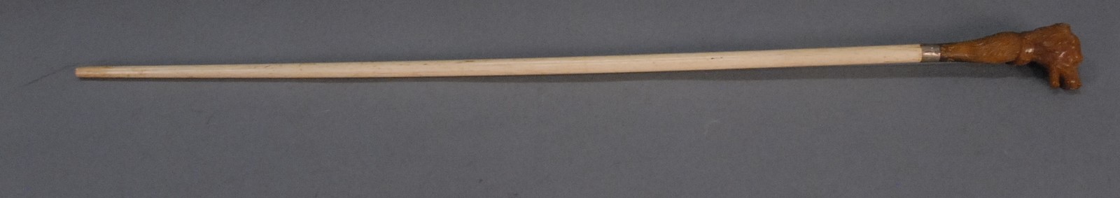 Bone cane with horn carved dog head top, 19th century. lg. 36 1/2 in.