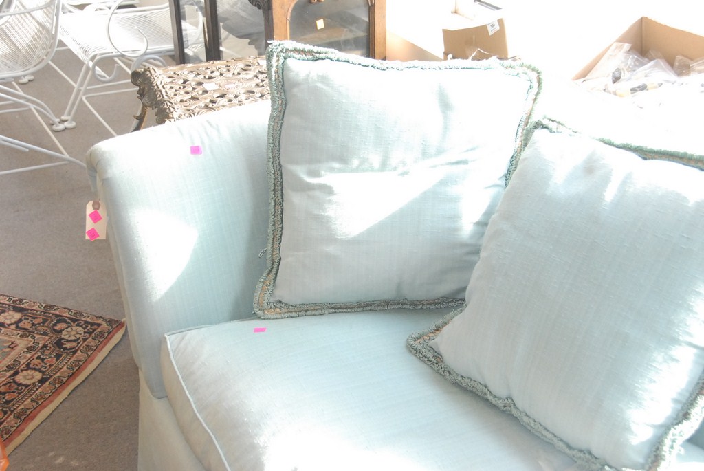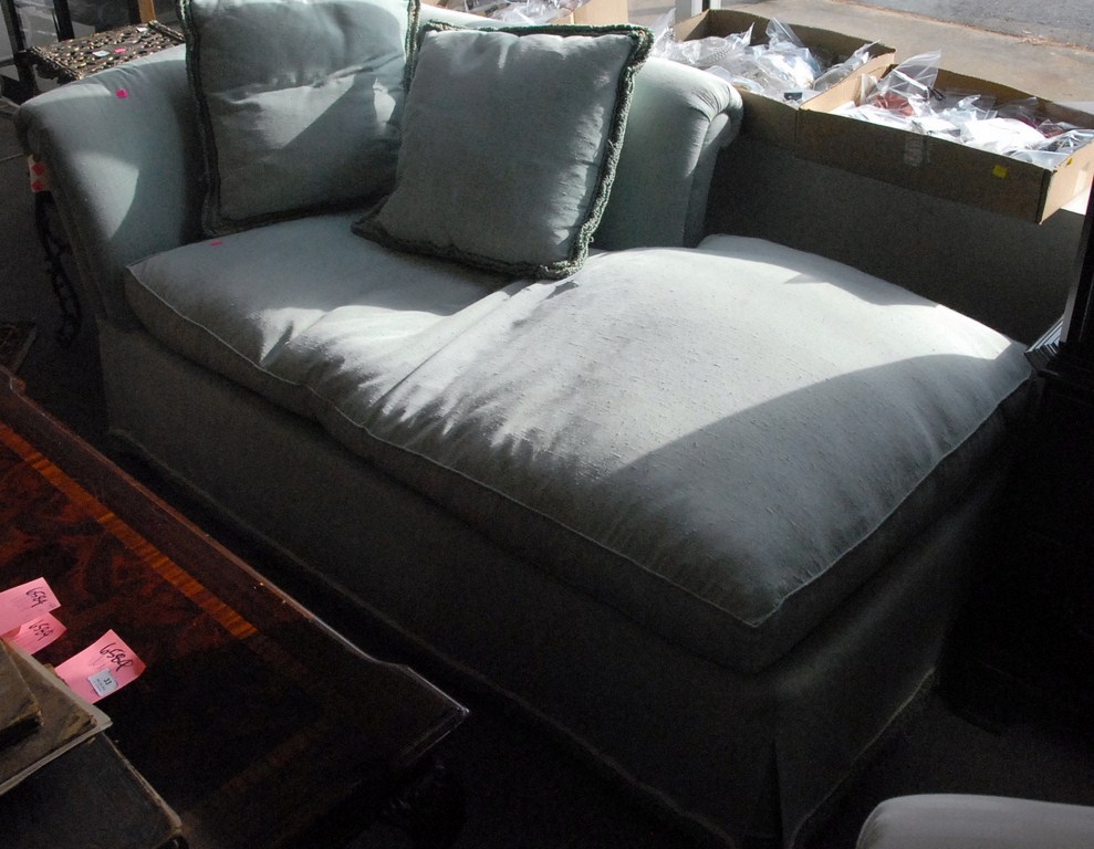 Chaise upholstered lounge, lg. 68 imperfections in materials.