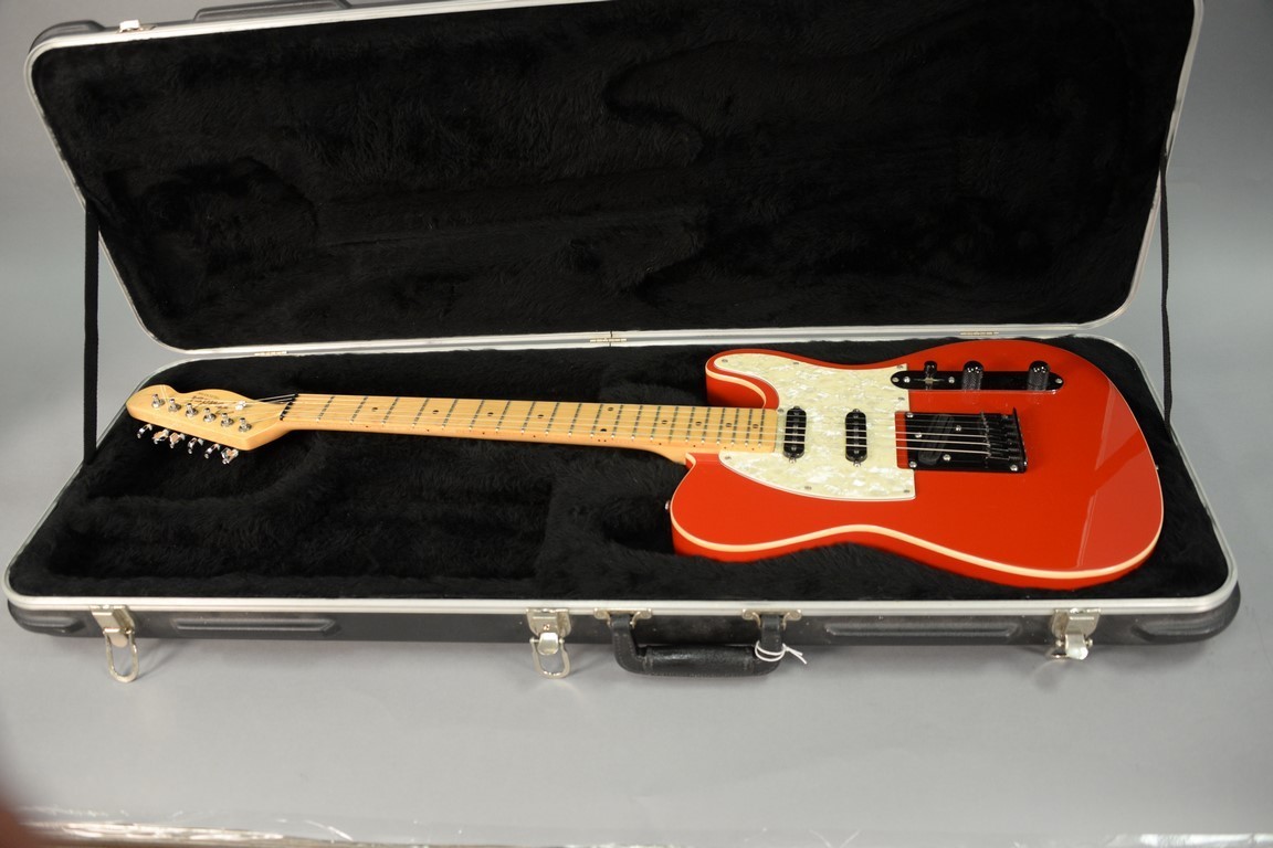 Fender telecaster American Standard guitar Fiesta red. As is, made up of parts, not a true Fender Telecaster, neck is marked Fender Telecaster, in fitted case. lg. 39in.