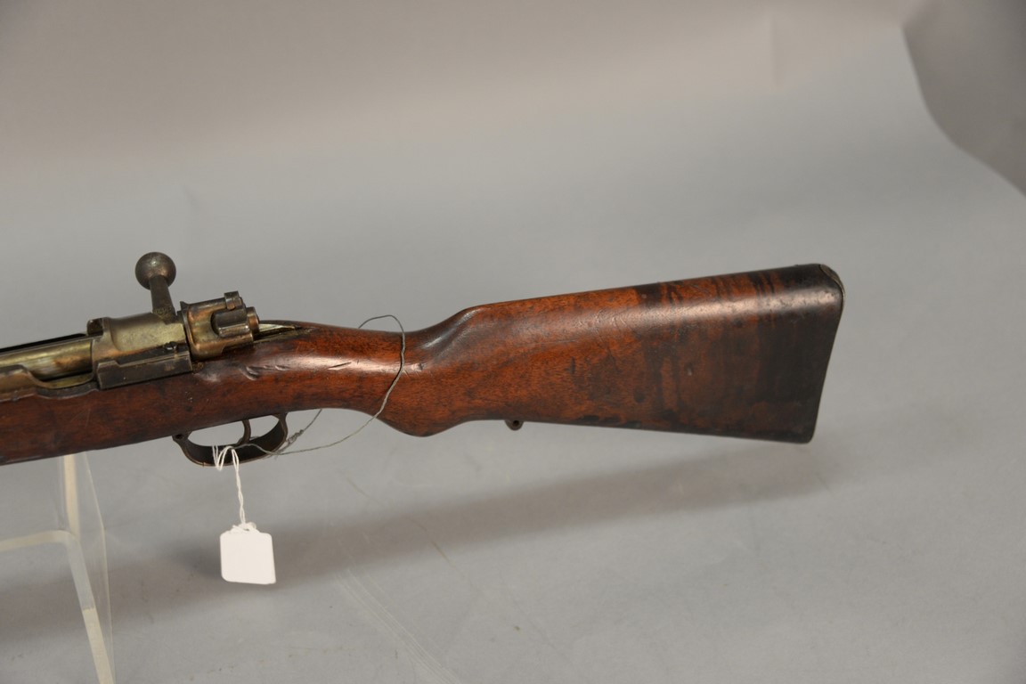 Lot 296: GEW Mauser 98 Waffenfabrik Oberndorf 1916 rifle bolt action, 29 1/2 barrel, military configuration, three clear cartouches on the s…