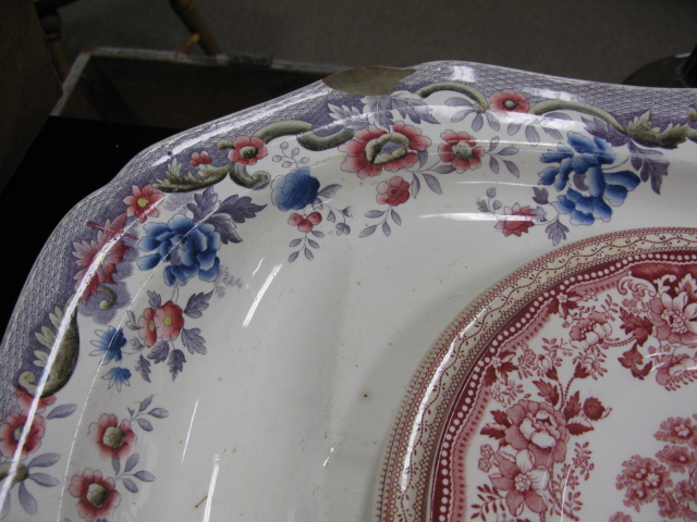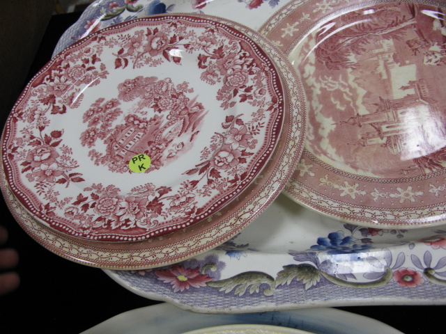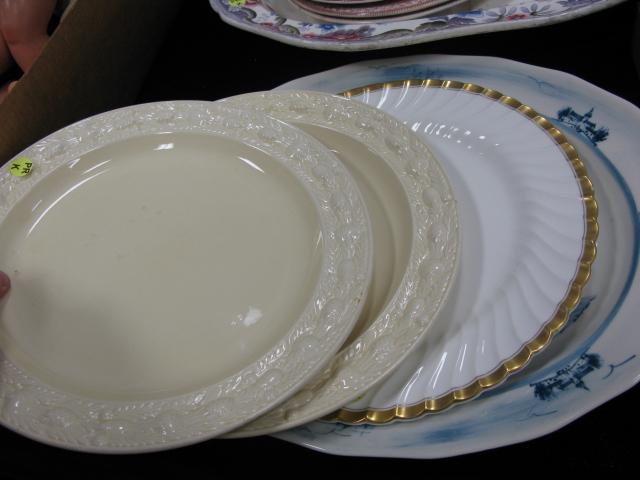 Group of platters well & tree pattern platter, blue and white platter with sailboat and 6 round platters.
