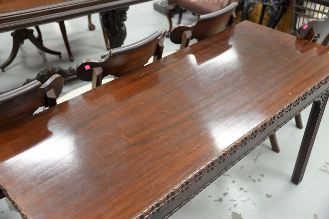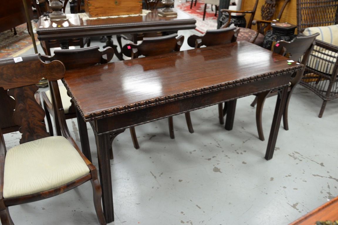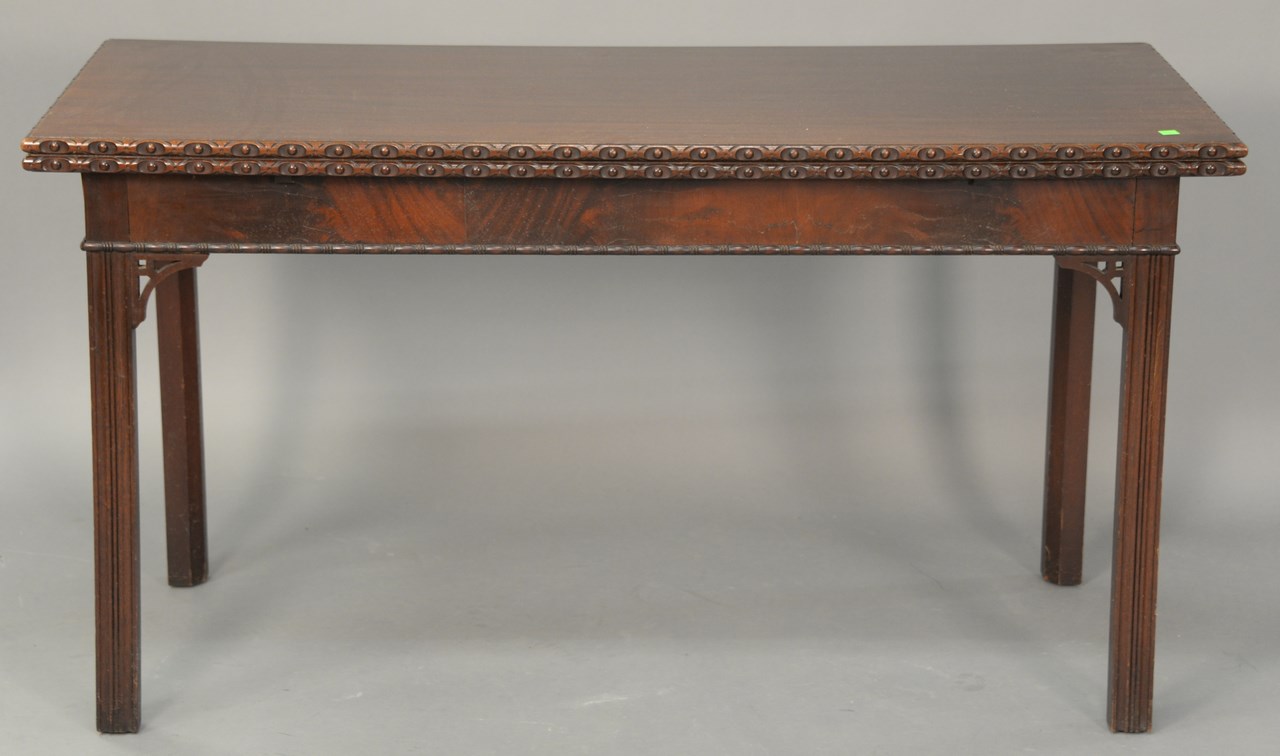 Lot 296: Kittenger custom mahogany Chippendale style table. ht. 30 in. open: 44 x 55 1/2 closed: 22 x 55 1/2