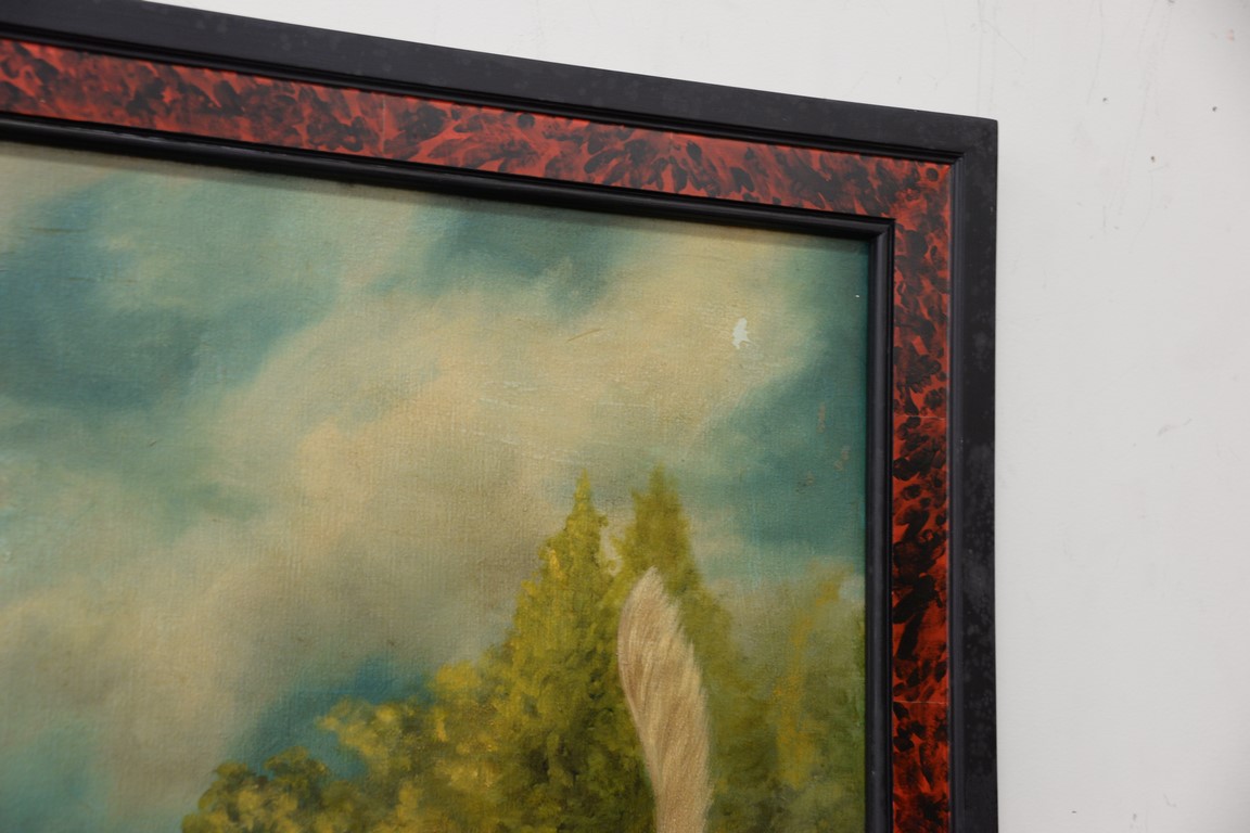 Large 20th century primitive style painting with two dogs, 35 x 48.