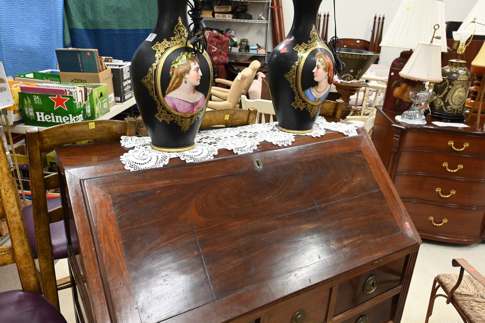 Lot 296: Louis XVI Mahogany Slant Front Desk, 18th century, height 44 inches, width 43 inches.