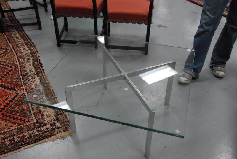 Mies Van der Rohe style coffee table, 36 x 36.