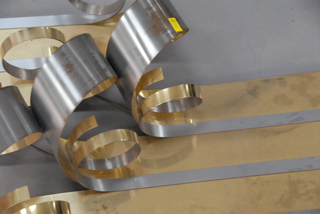 Steel and brass wall hanging, lg. 63, ht. 22.