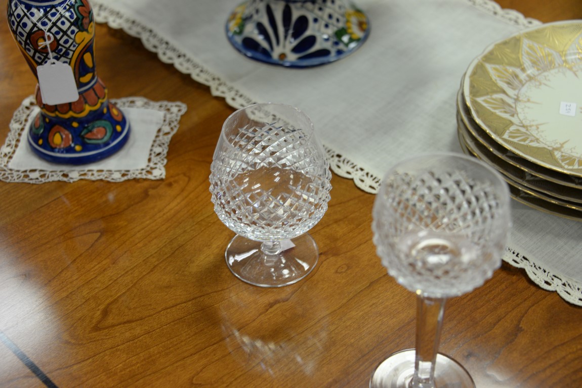 Lot 296: Two sets of six Waterford Alan pattern glasses including six wine hock ht. 7 1/2 in. and six brandy snifters ht. 5 in.