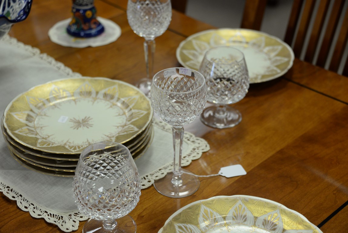 Two sets of six Waterford Alan pattern glasses including six wine hock ht. 7 1/2 in. and six brandy snifters ht. 5 in.
