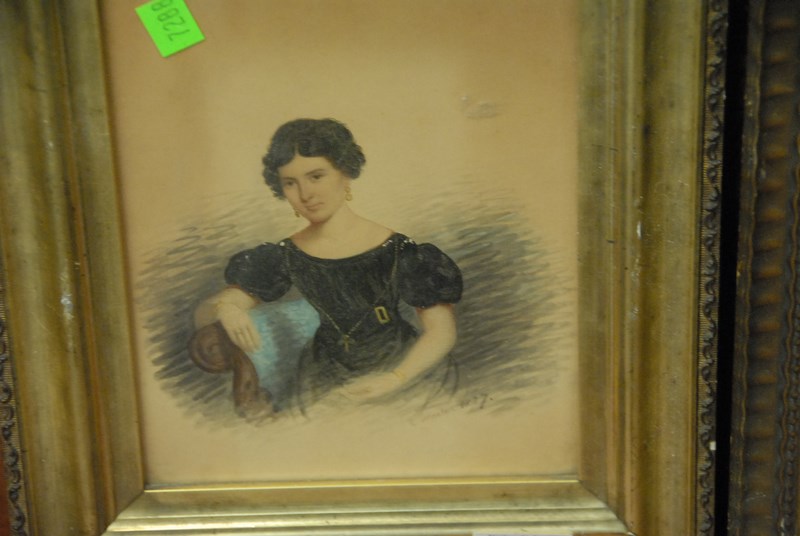 Lot 296: Two watercolors by Edward Heaton 1824 including one portrait of a girl signed E. Heaton 8 x 6 1/2 and a 19th century watercolor …
