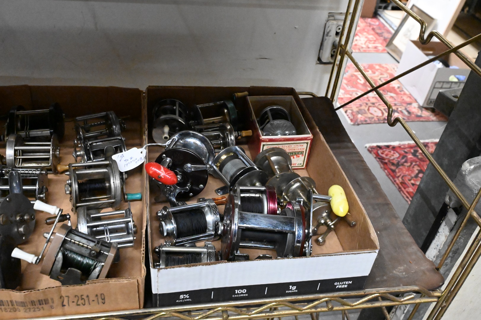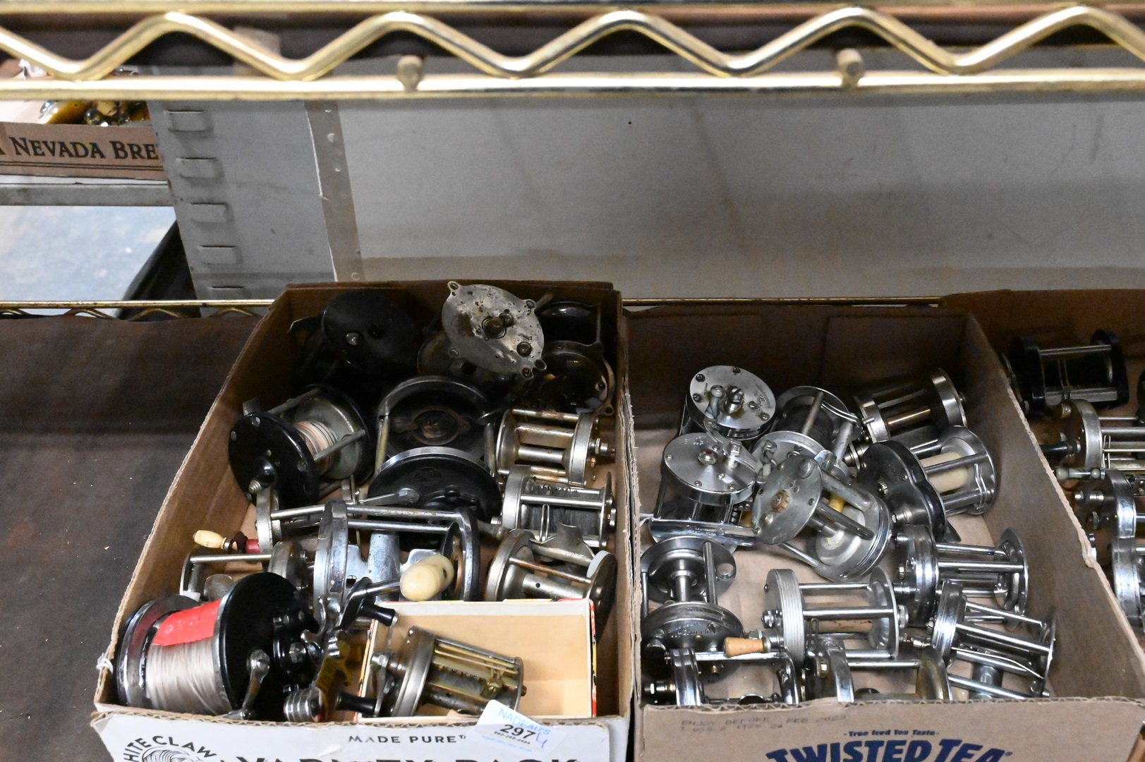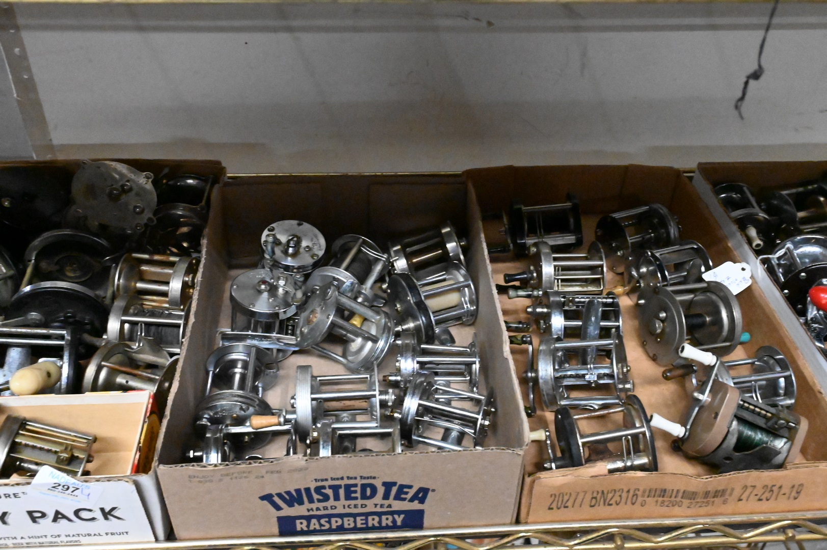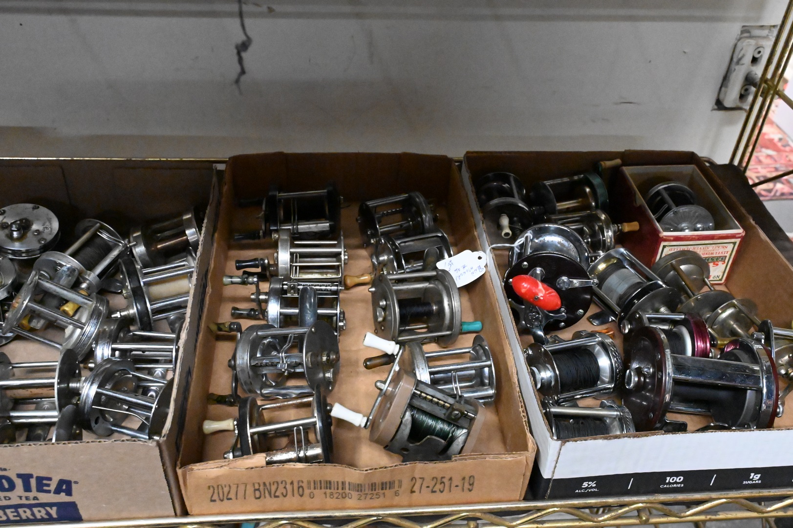 Approximately 47 Piece Lot of Baitcaster Reels, brands include Penn, South Bend, Shakespeare, along with others.