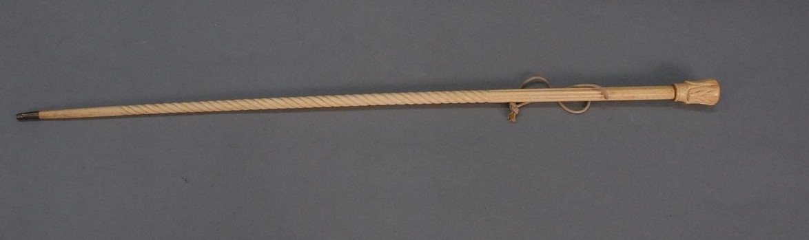Bone cane with carved knob top, shaft with fluting and spiral turnings, 19th century. lg. 31 3/4 in.
