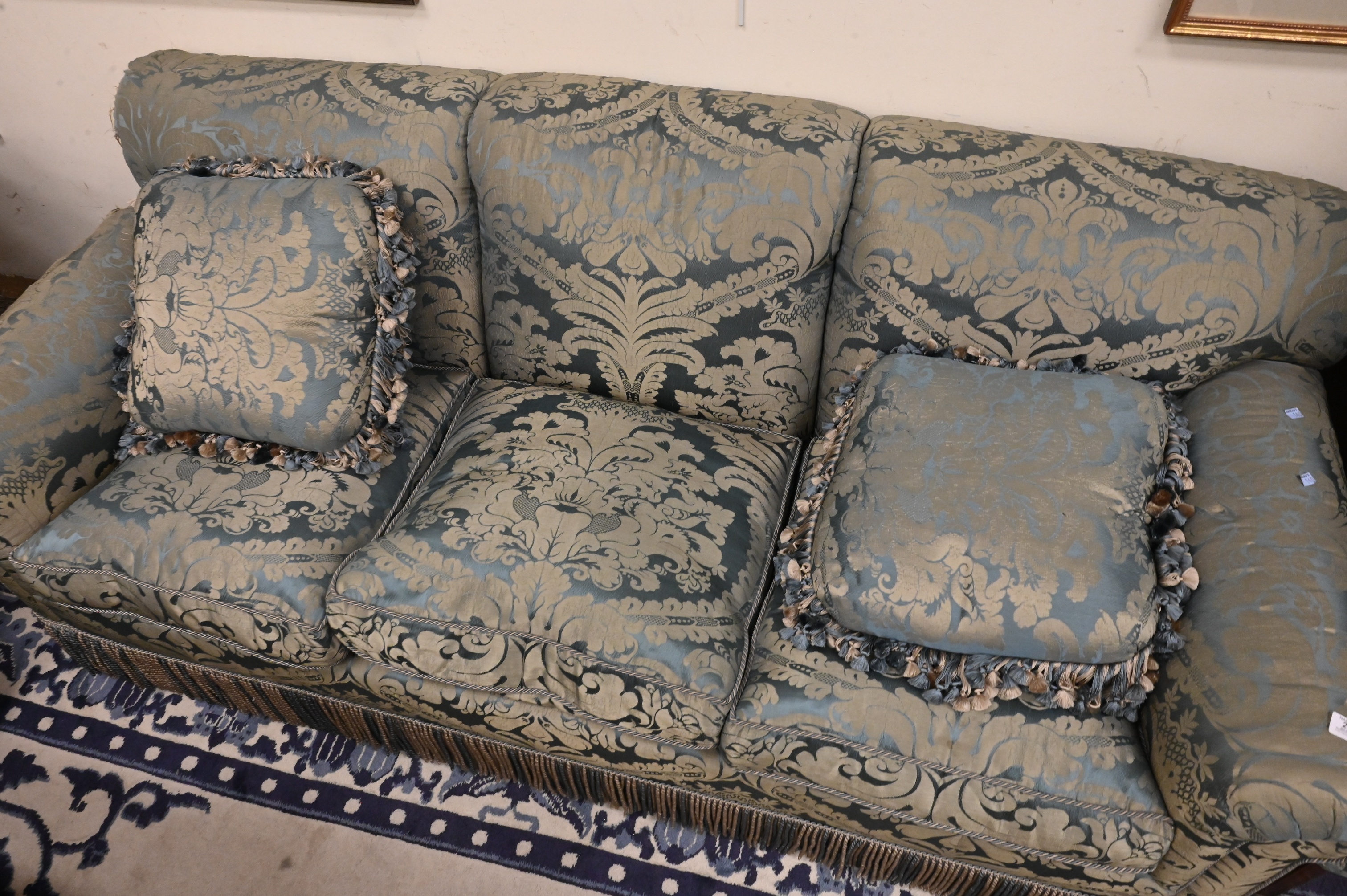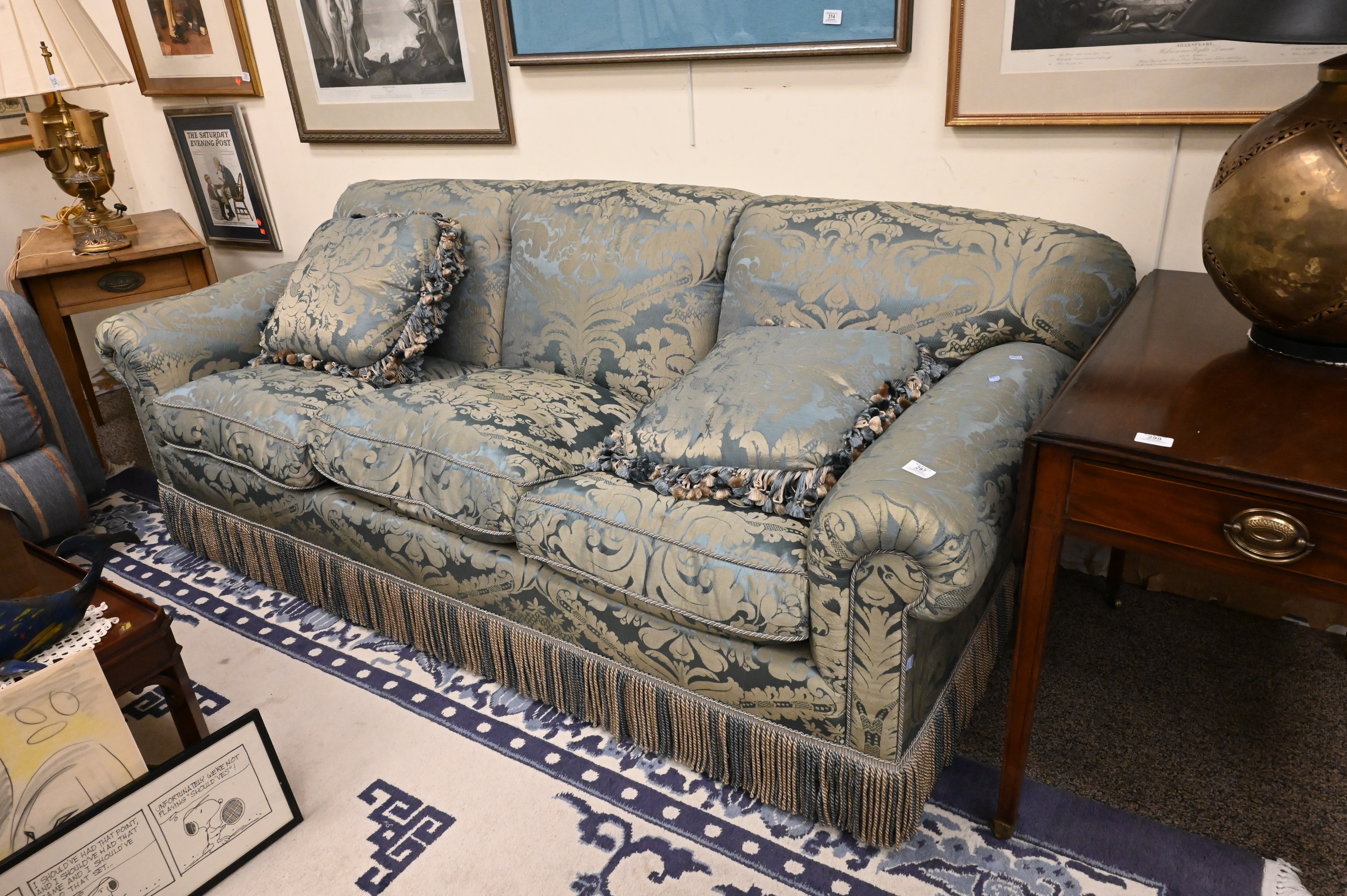 Lot 297: Custom Blue Fortery Silk Upholstered Sofa