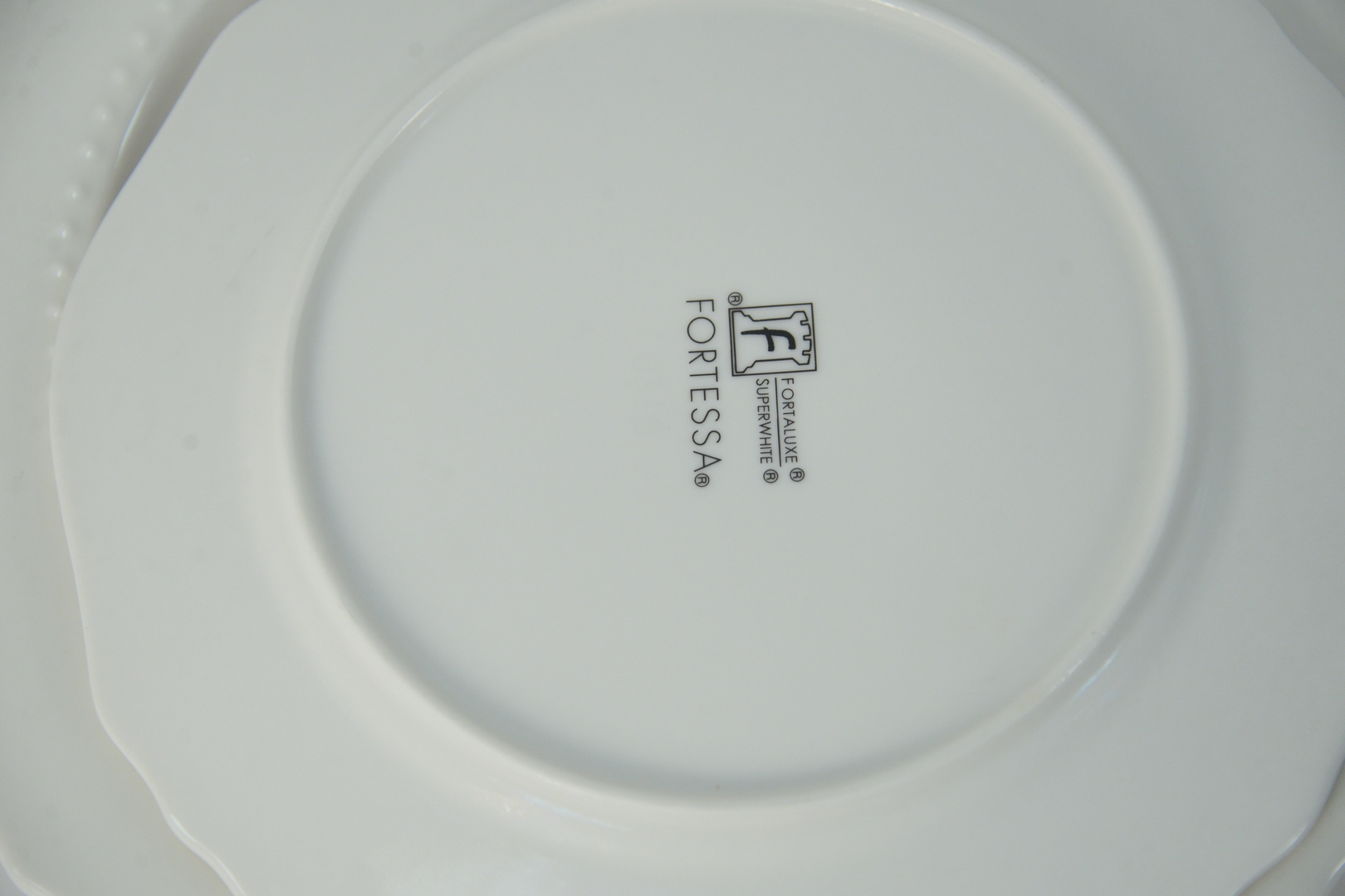 Forty-four piece Set of Fortaluxe Superwhite Dinnerware, “Fortessa”, to include 12 dinner plates; 12 bowls; 12 lunch plates; along with 12 cups.