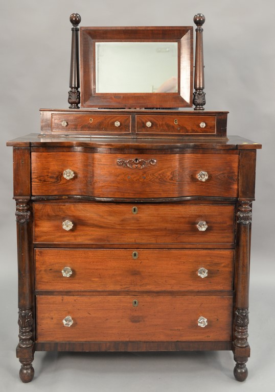 Mahogany and rosewood chest with mirror, circa 1840. ht. 67in., wd. 43in.
