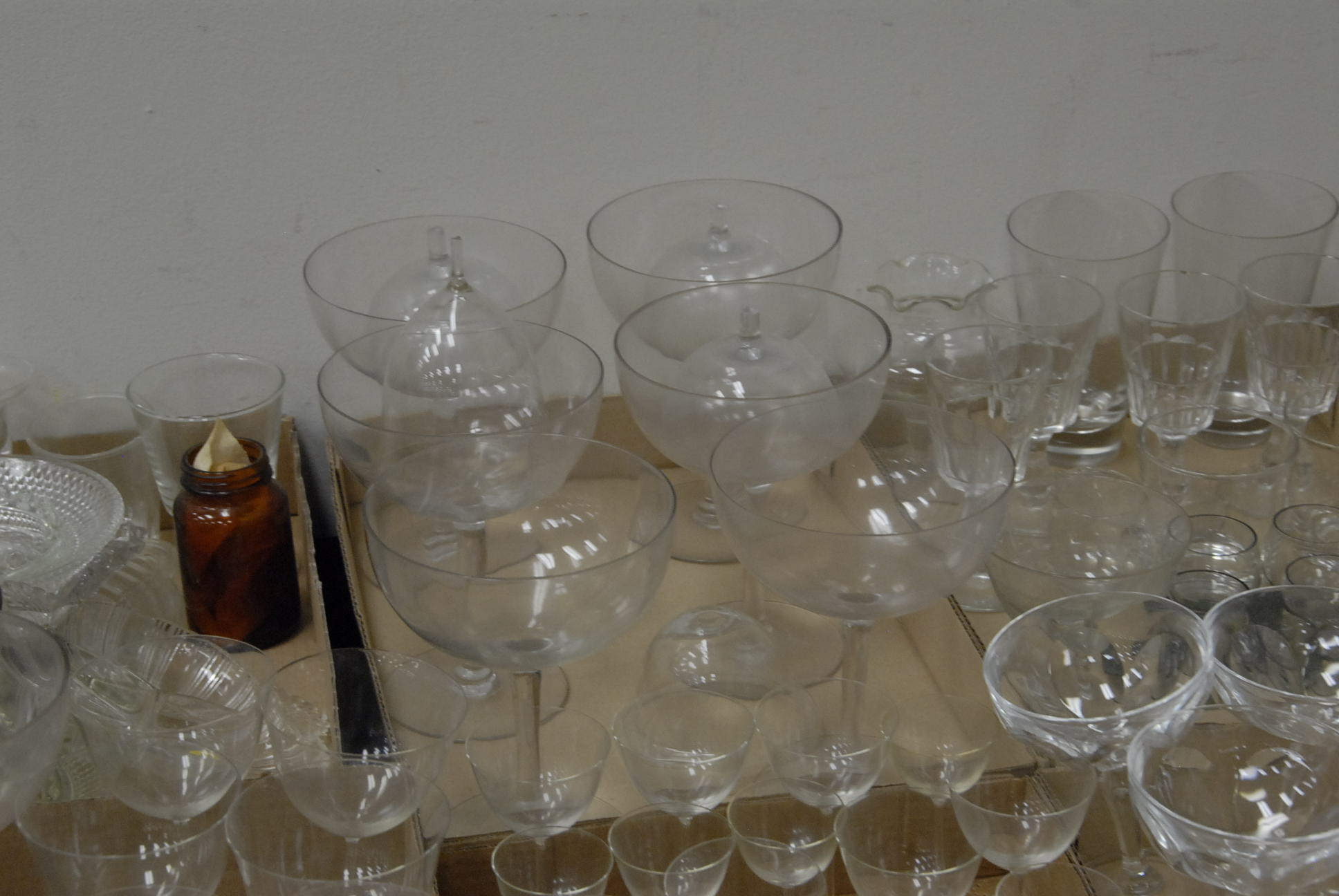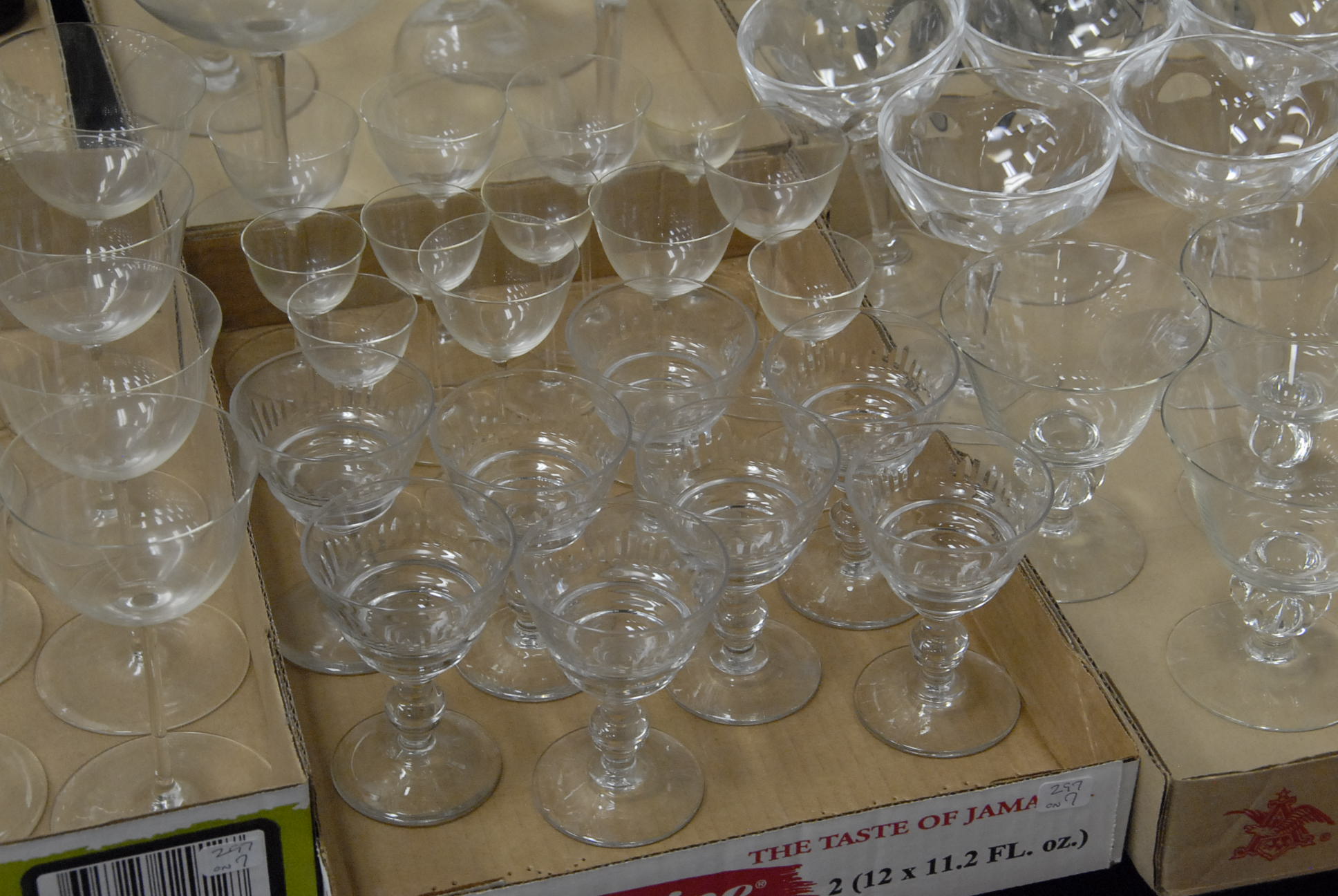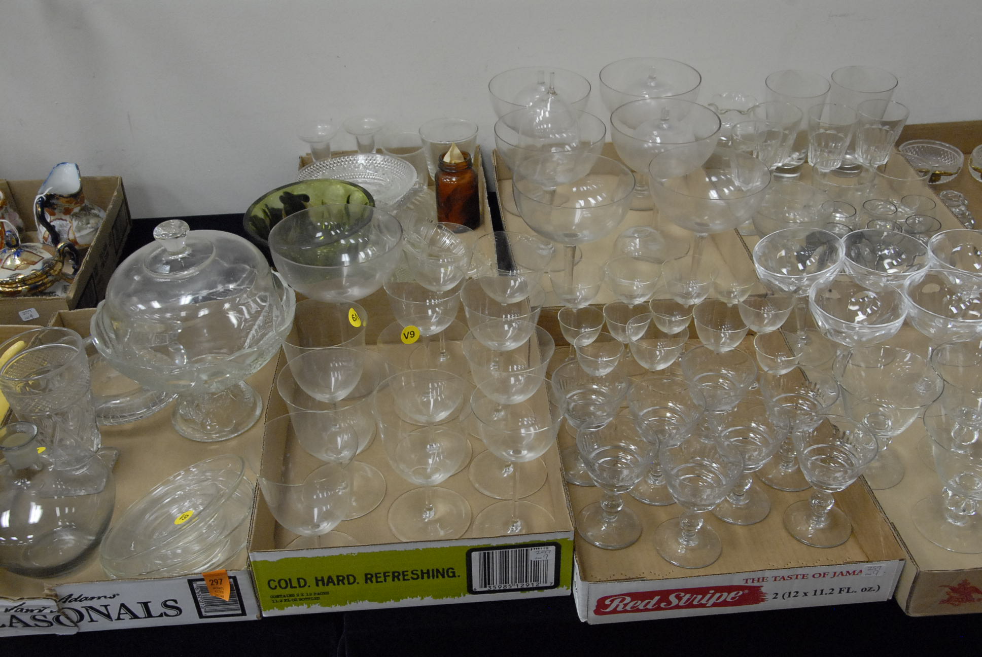 Seven box lots of crystal, glasses, stems, bowls, etc