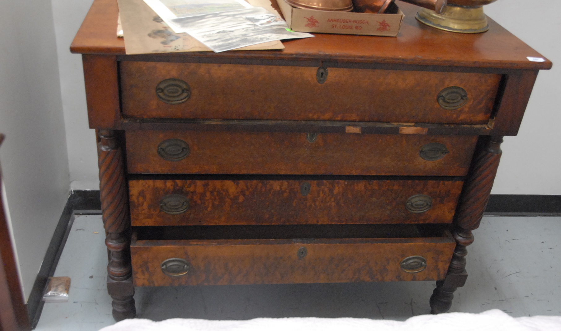 Sheraton chest with birdseye maple drawer fronts, circa 1830.