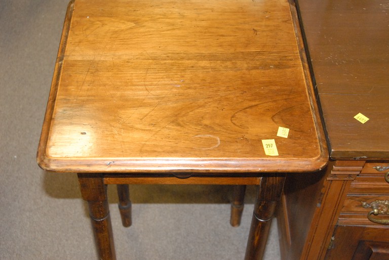 Small one drawer Sheraton stand with turned legs and occasional chair.