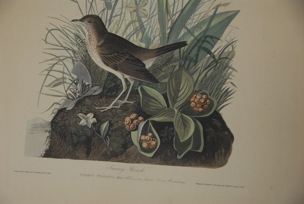 Lot 297: Two hand colored engravings after John James Audubon to include Tawny Thrush Turdus Wilsonii plate CLXIV no. 33 and Cat Bird Turdu…