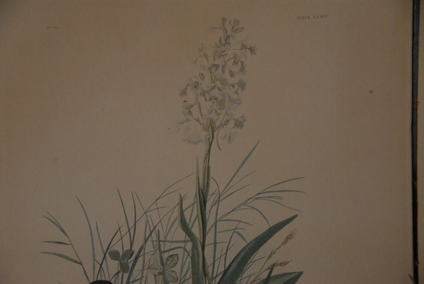 Two hand colored engravings after John James Audubon to include Tawny Thrush Turdus Wilsonii plate CLXIV no. 33 and Cat Bird Turdus Felivox plate CXXVIII, both trimmed and laid down on backing, 26 x 17 3/4.