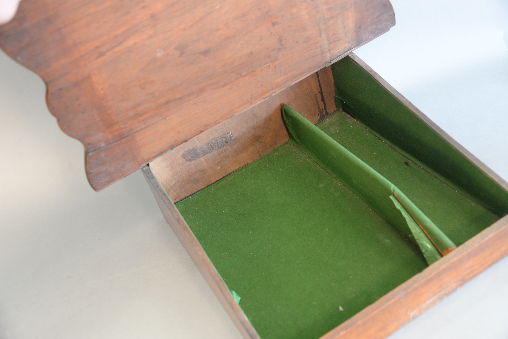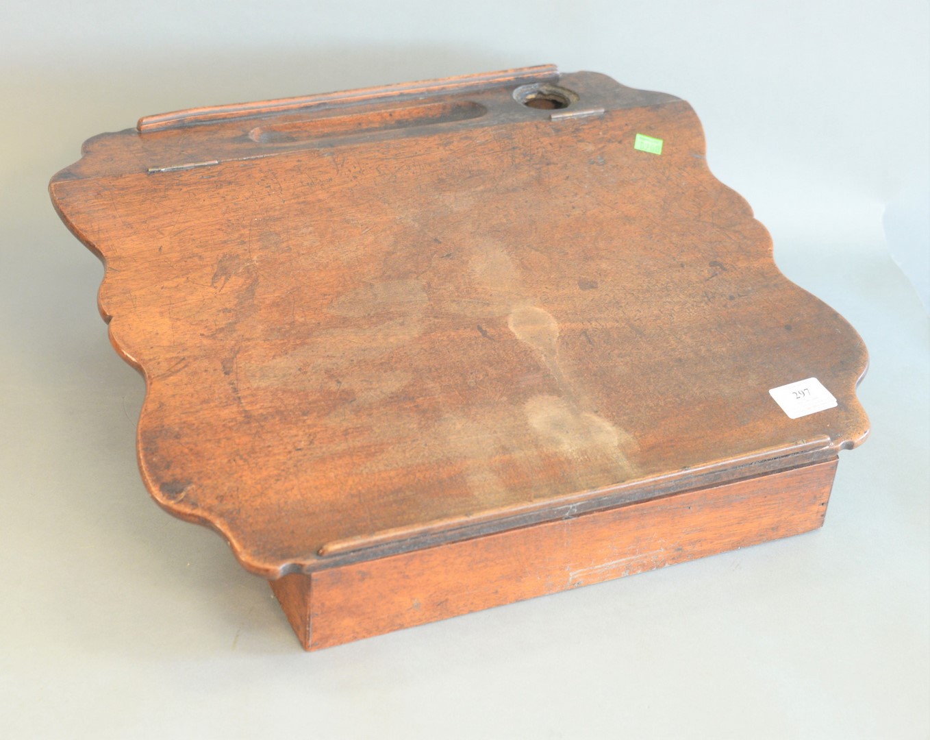 Walnut lap desk with shaped top and inkwell, 18th/19th C, ht. 6 1/2, wd. 20.