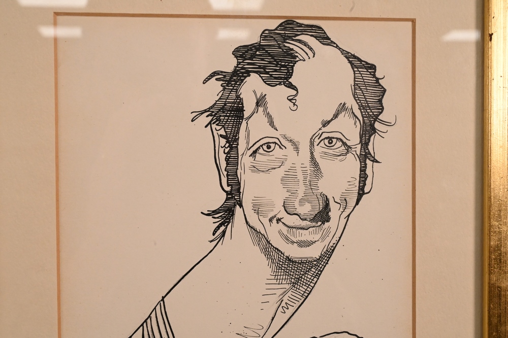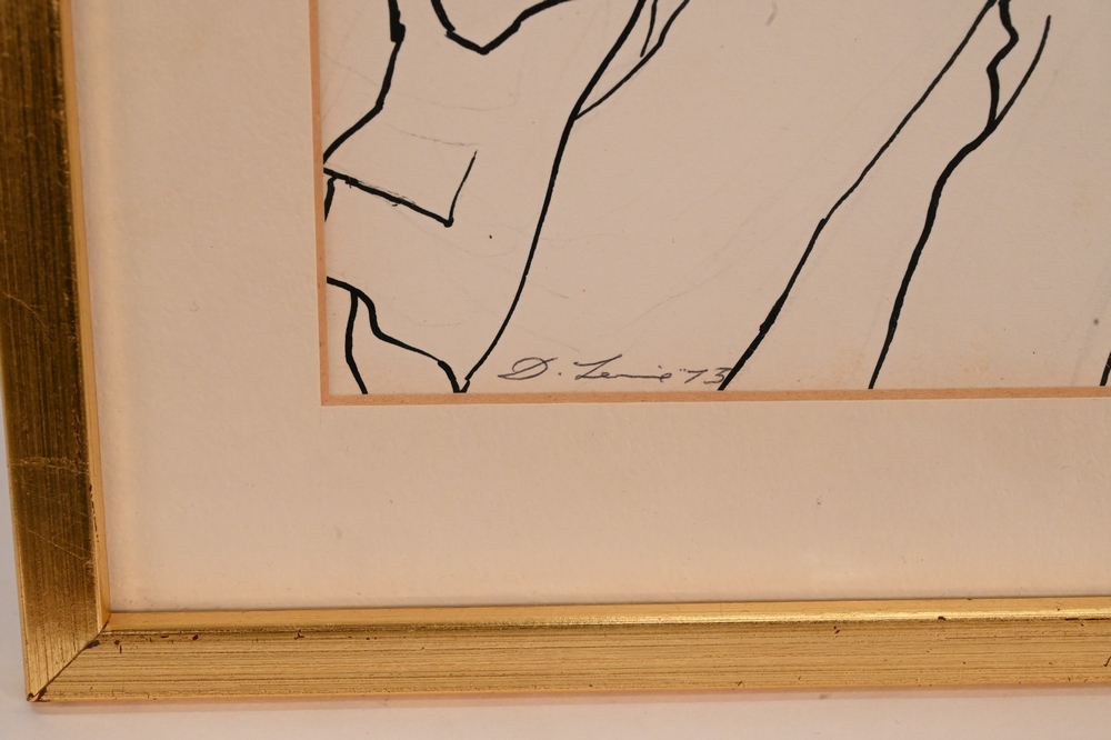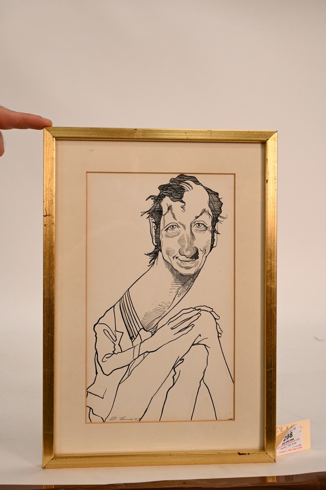 Lot 298: David Levine (1926 – 2009), Bill Bradley, pen and ink, signed D. Levine, 73, Gallery Fifty-two, New Jersey label verso, 6 1/2″ x 10…