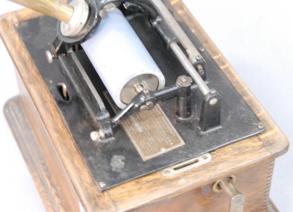 Edison phonograph with brass horn.