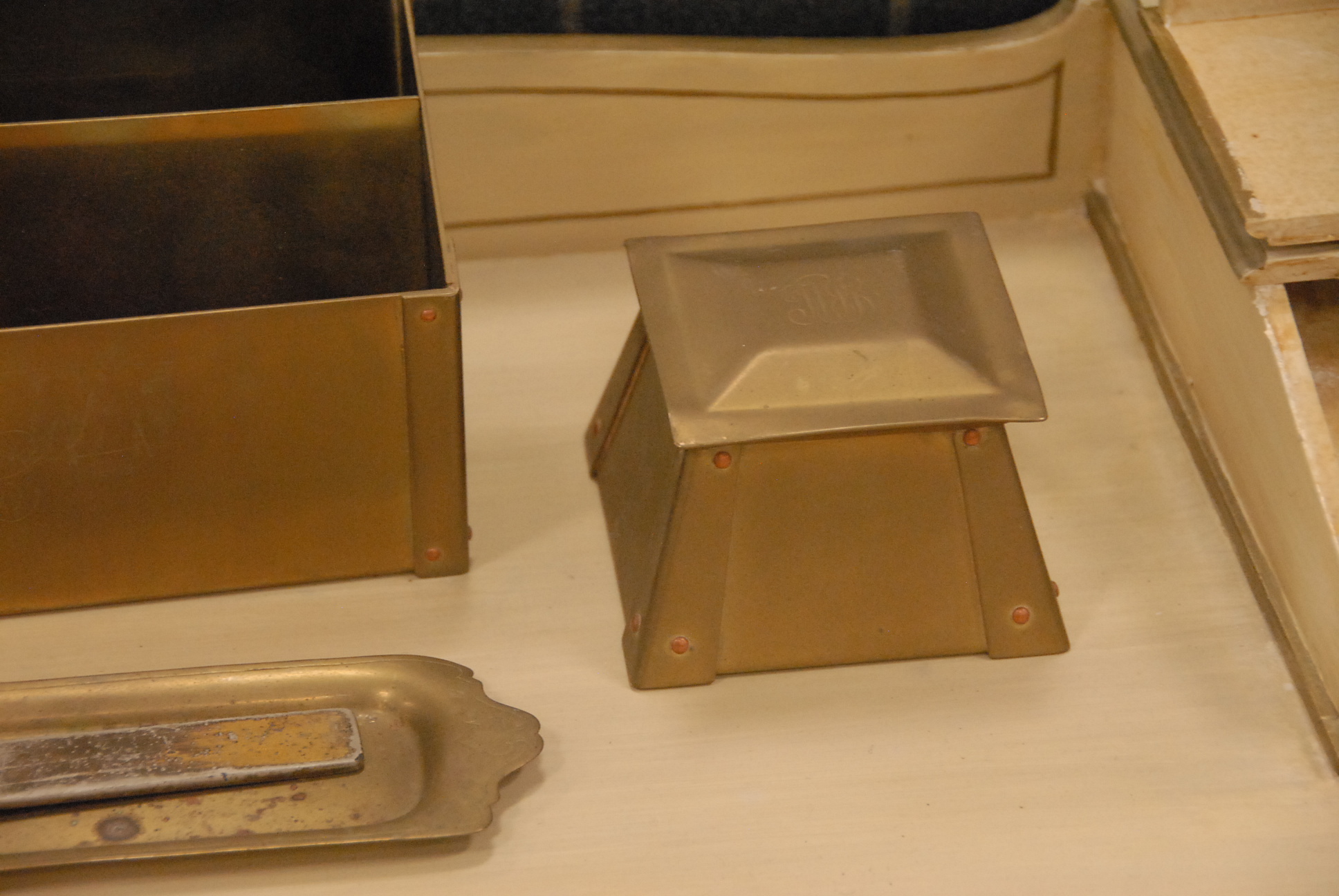 Five piece brass desk set.