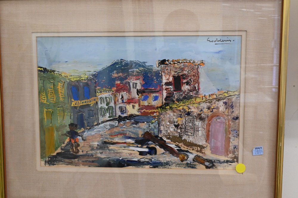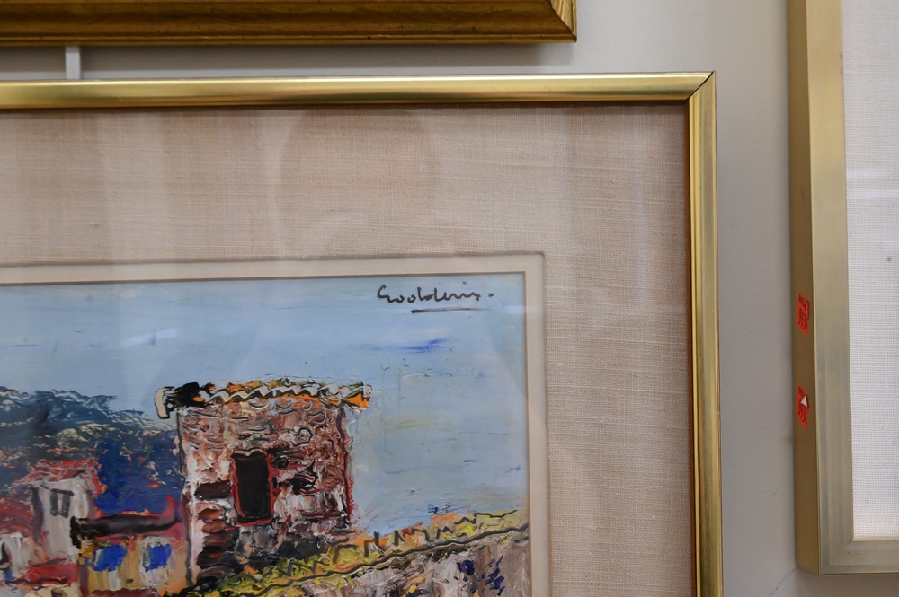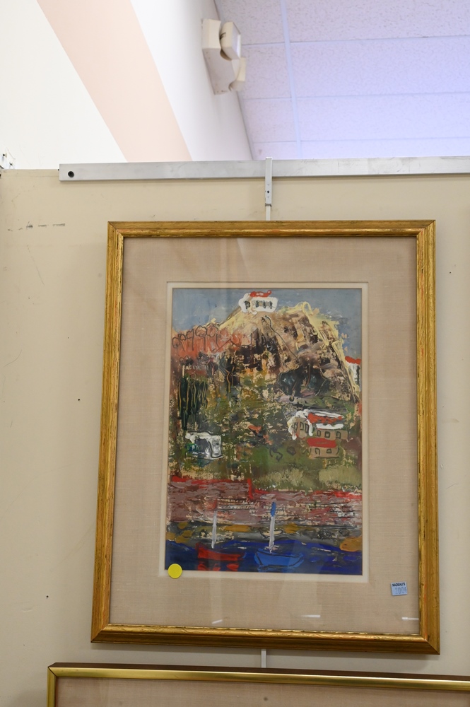 Lot 298: Jack Godderis (1916-1971), three piece lot to include: oil on board, signed upper right, 10.5″ x 15″; street scene, oil on paper, signed upper right, 10.25″ x 15.5″; port, oil on paper, signed lower right, 15.25″ x 10.5″. Provenance: The Estate of Alina Roisen, Park Avenue, New York.