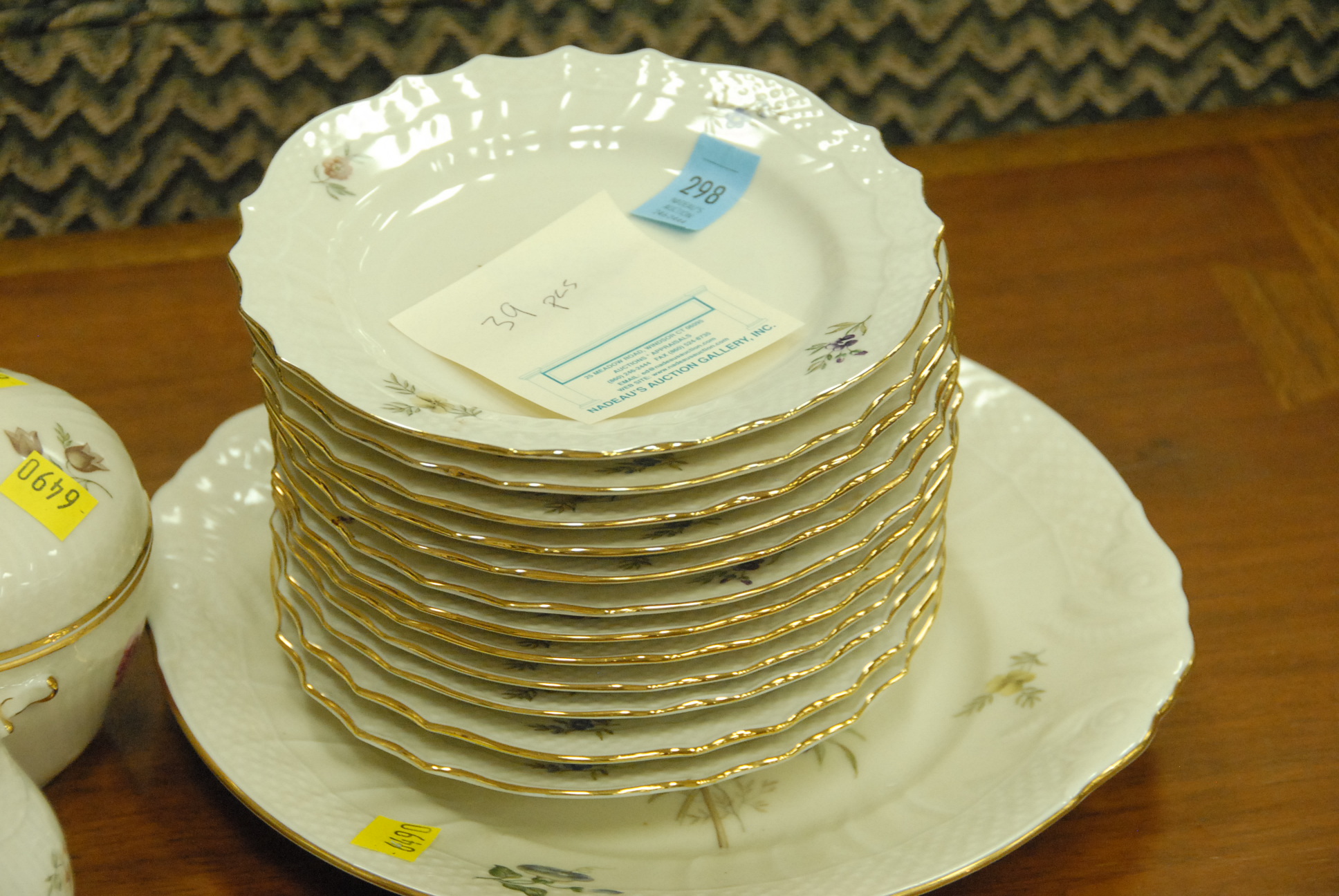 Lot 298: Partial set of Royal Copenhagen dessert set with cups, saucers, dessert plates etc., 39 pieces.