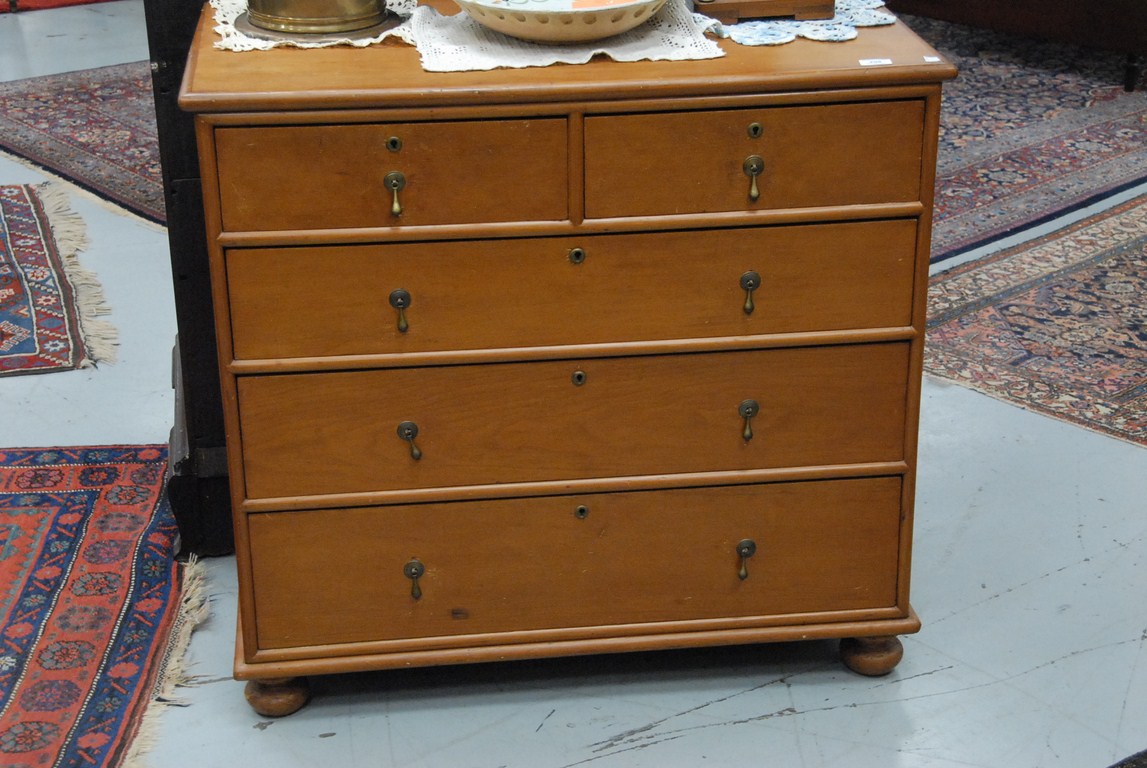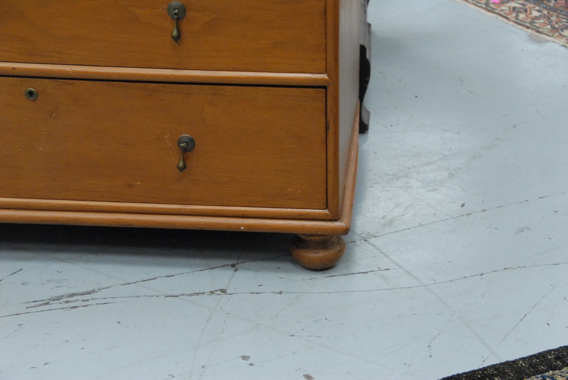 Lot 298: Queen Anne chest, pine, with two over three drawers set on suppressed ball feet, 18th century. ht. 35in. wd. 36in. dp. 19 1/2in.