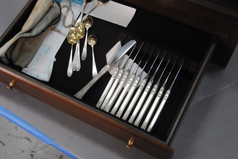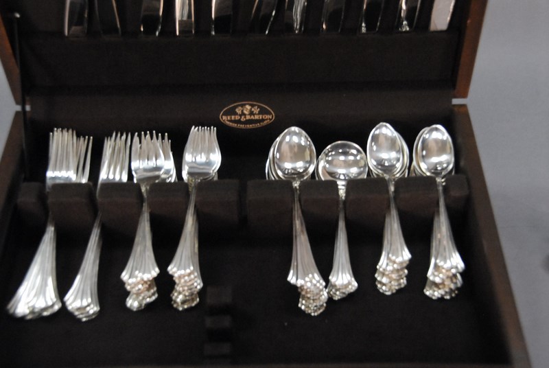 Lot 298: Reed & Barton sterling silver flatware set, setting for twelve. 118.5 t oz. plus 25 handles.