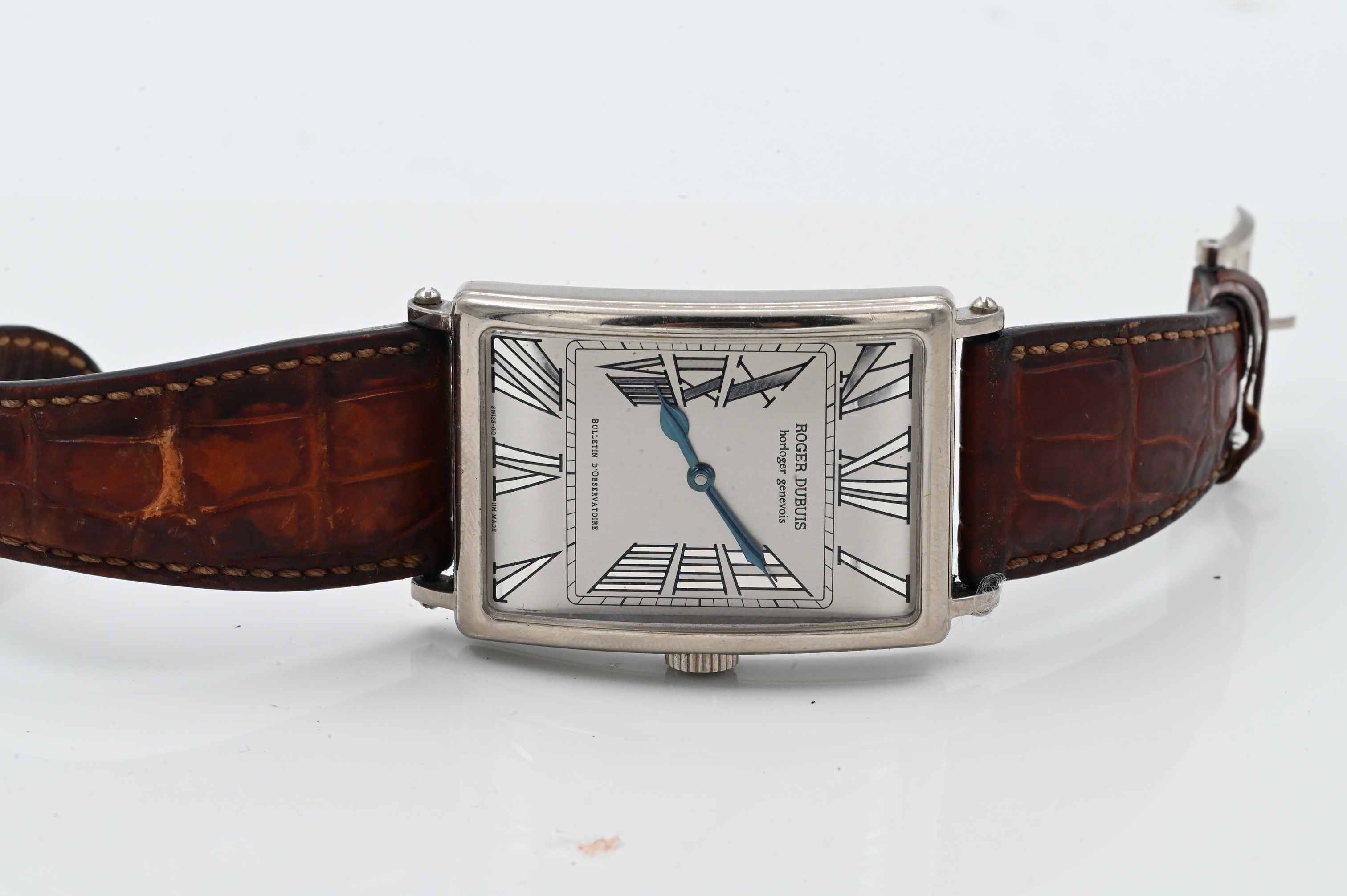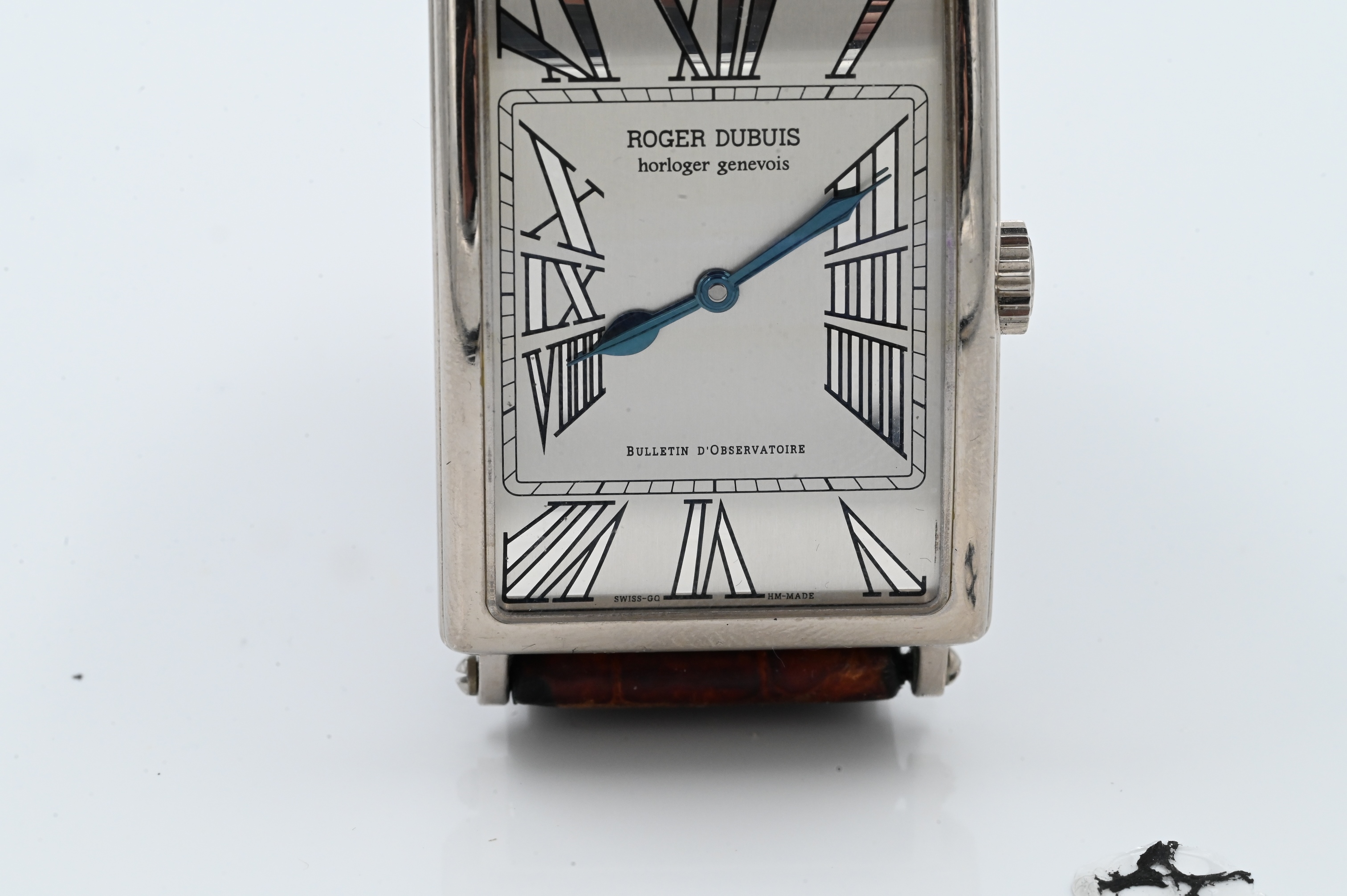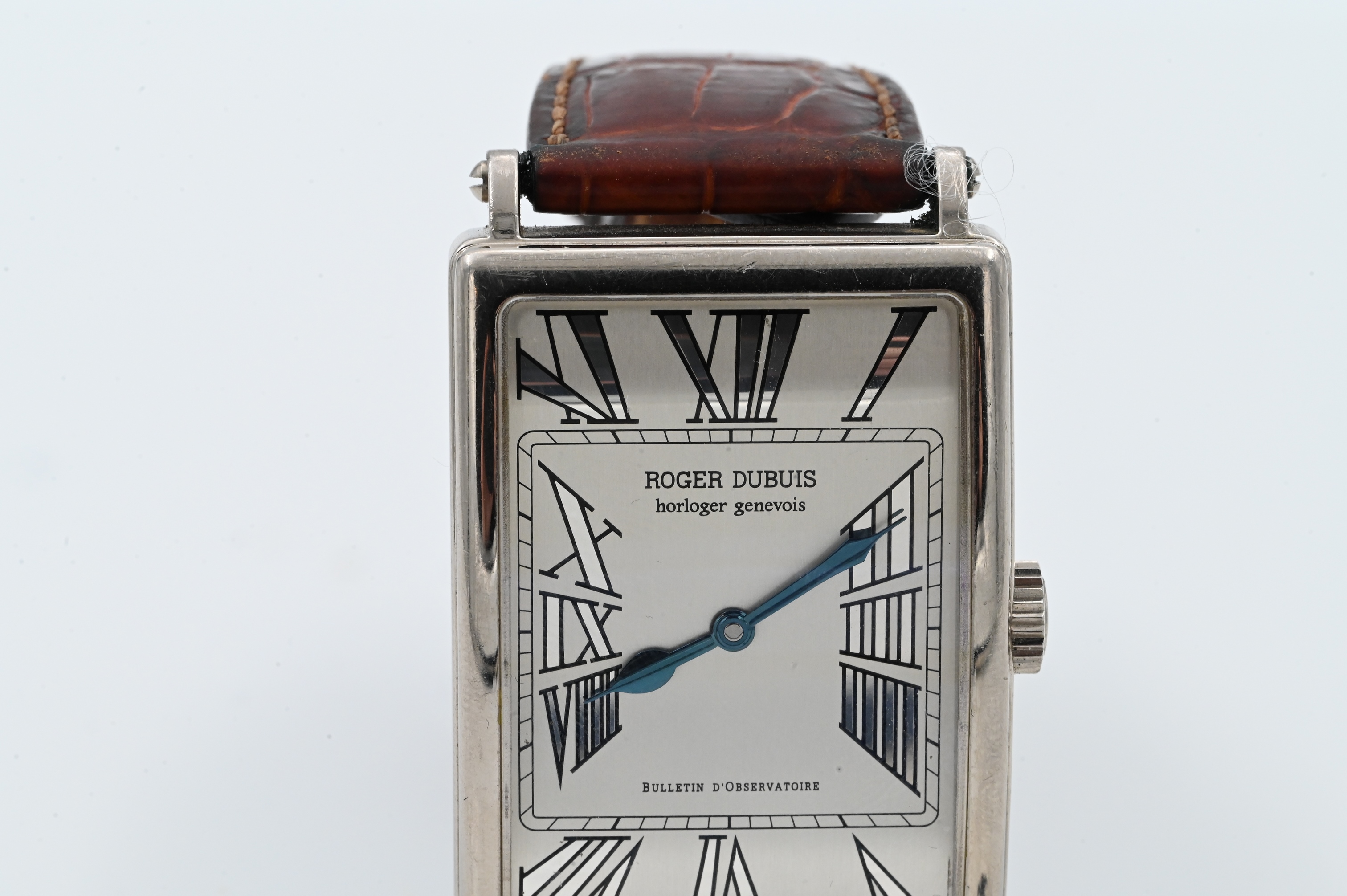 Lot 298: Roger Dubuis 18K White Gold Horloger Genevois Rectangular Men’s Wristwatch