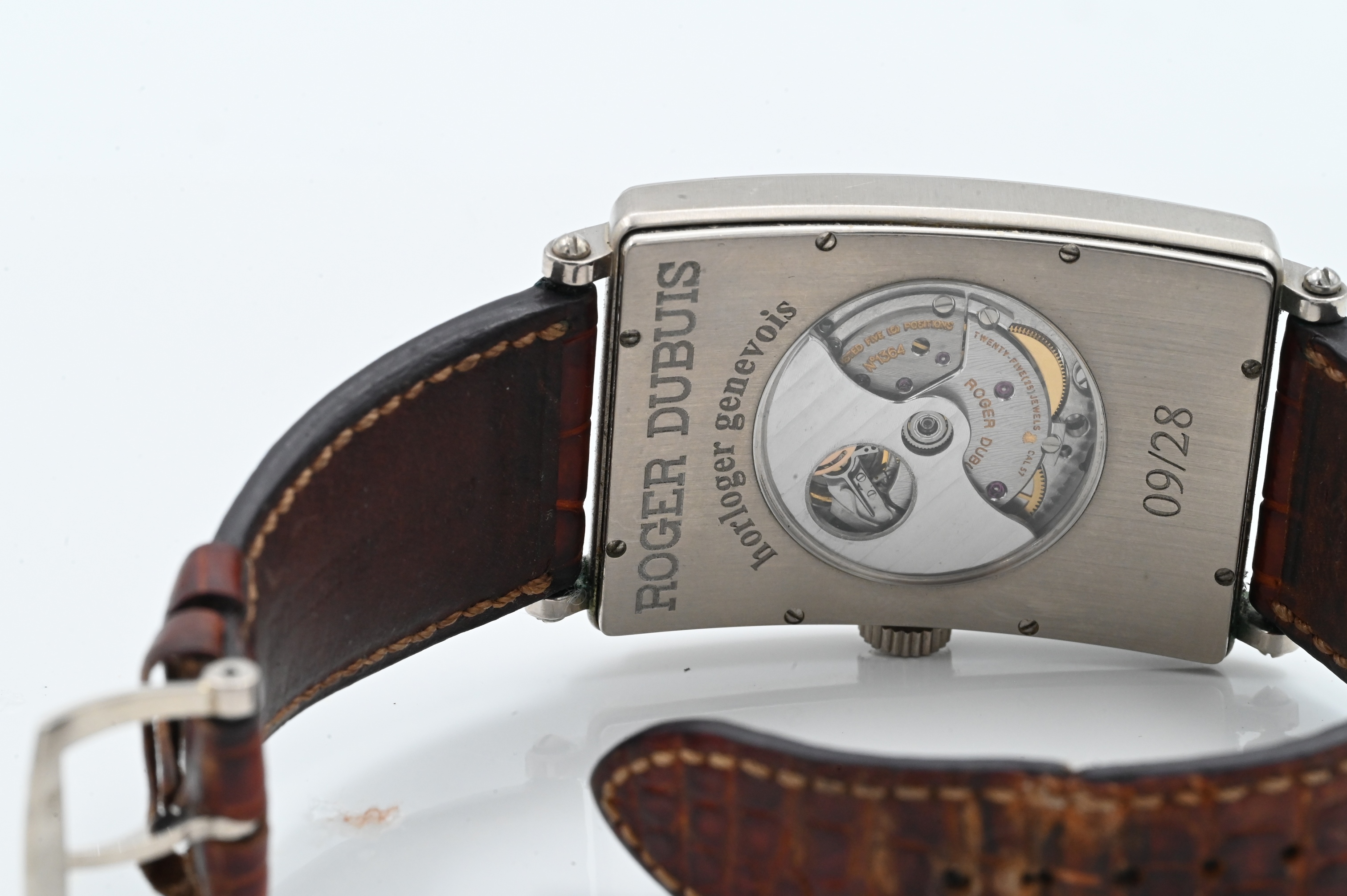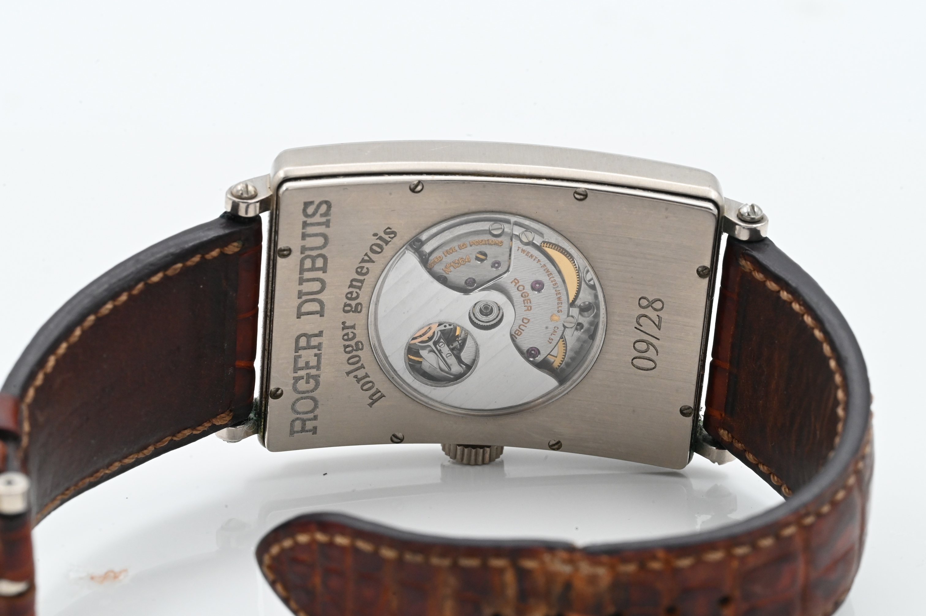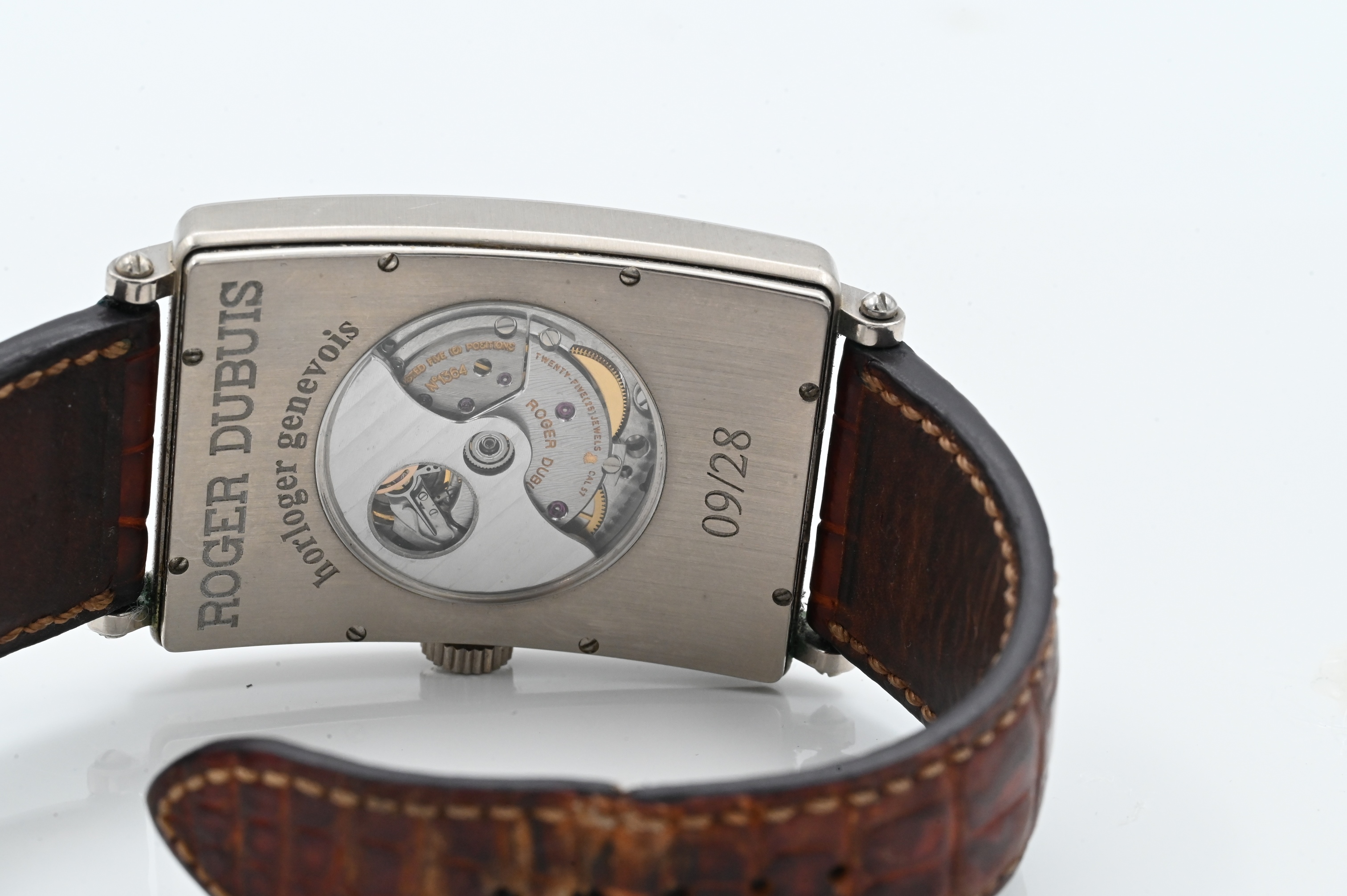 Lot 298: Roger Dubuis 18K White Gold Horloger Genevois Rectangular Men’s Wristwatch