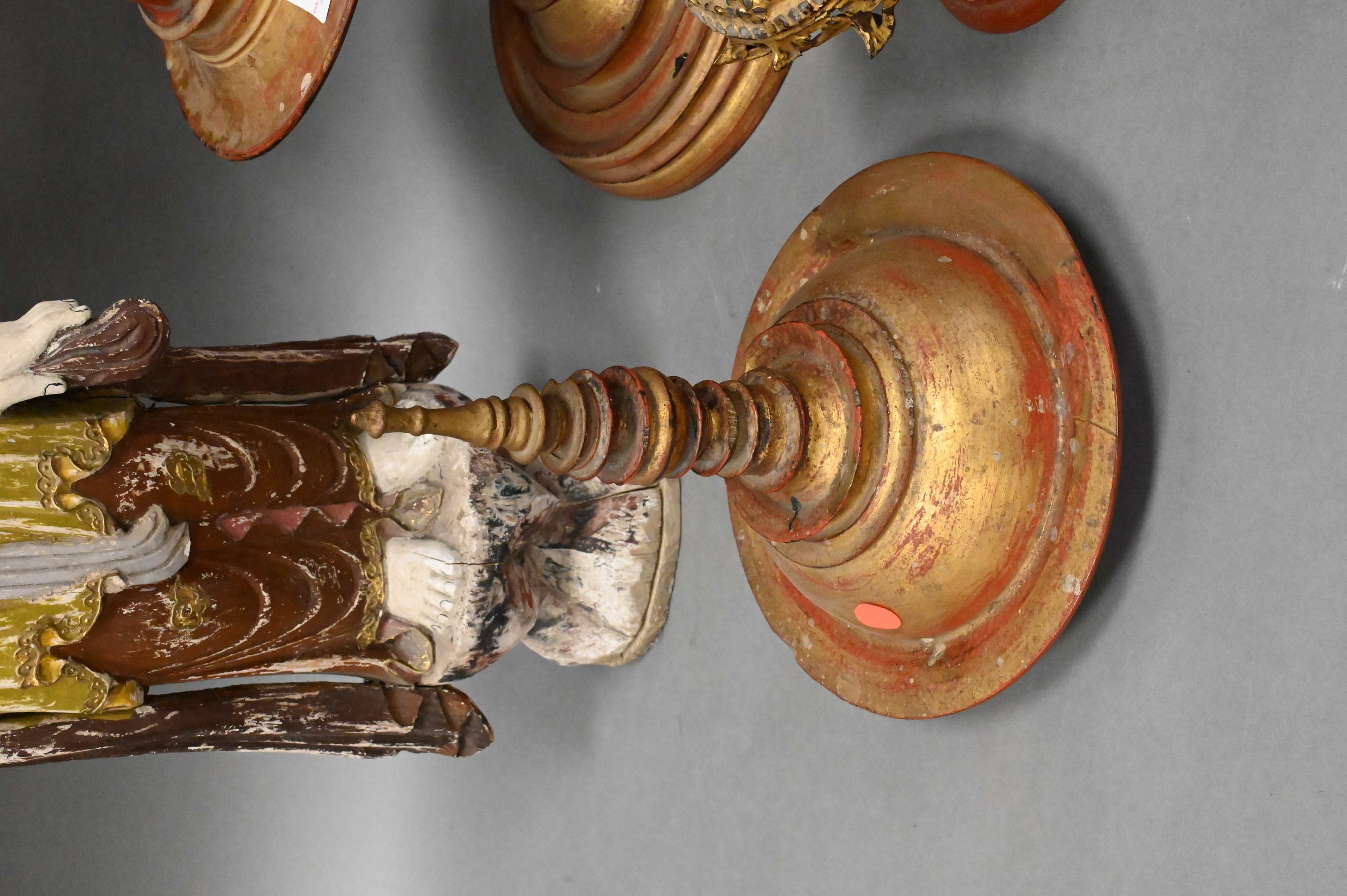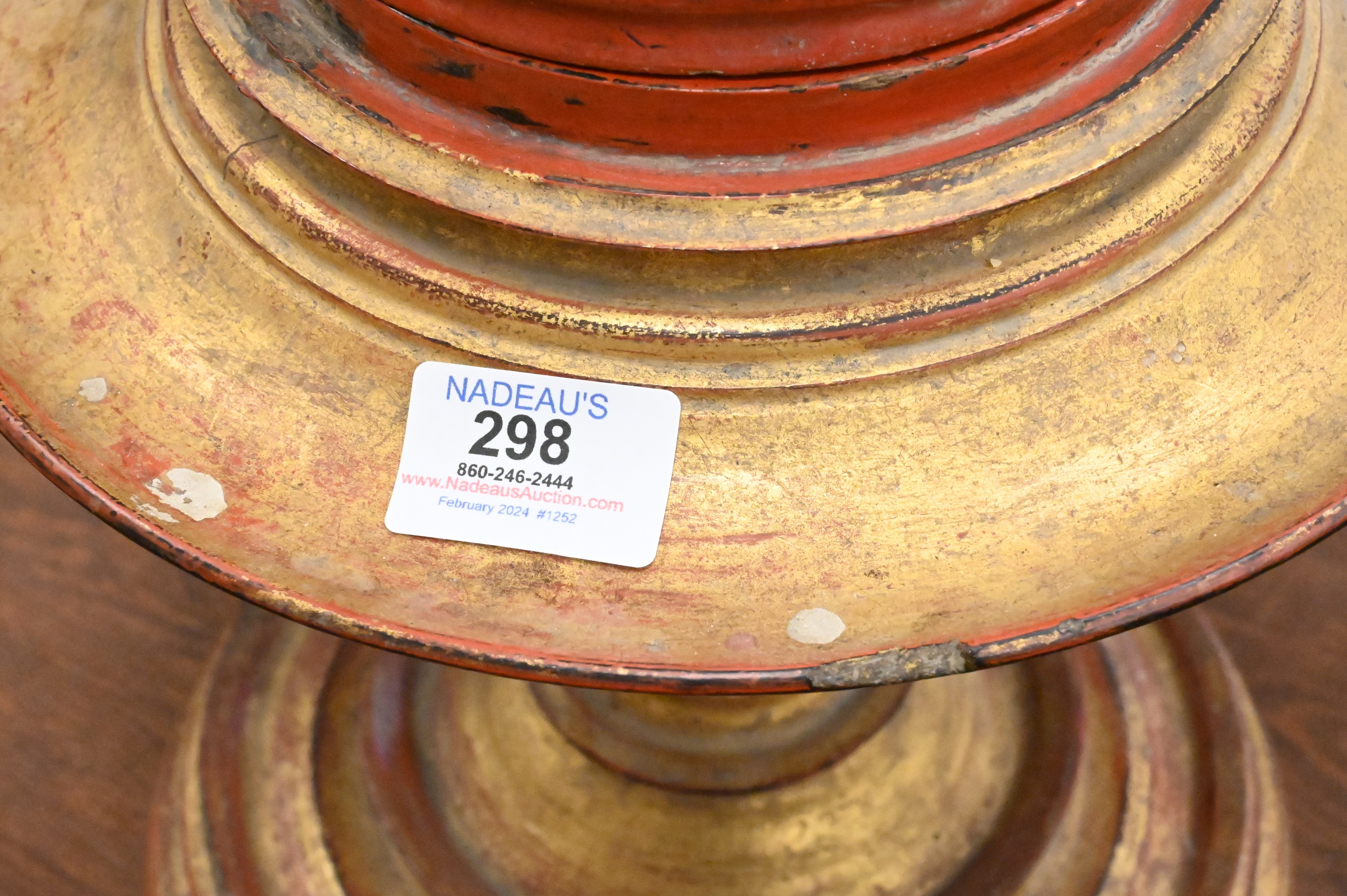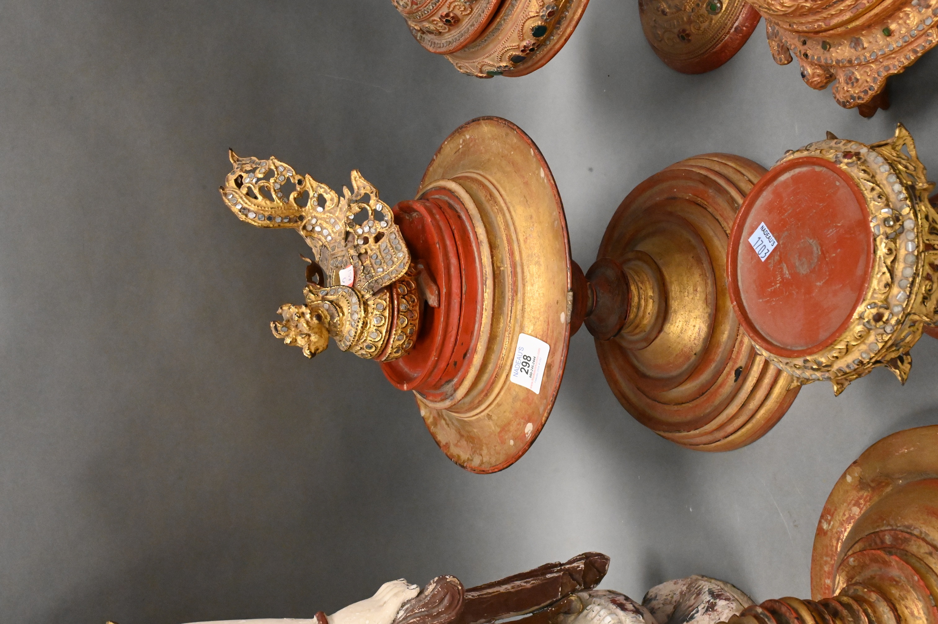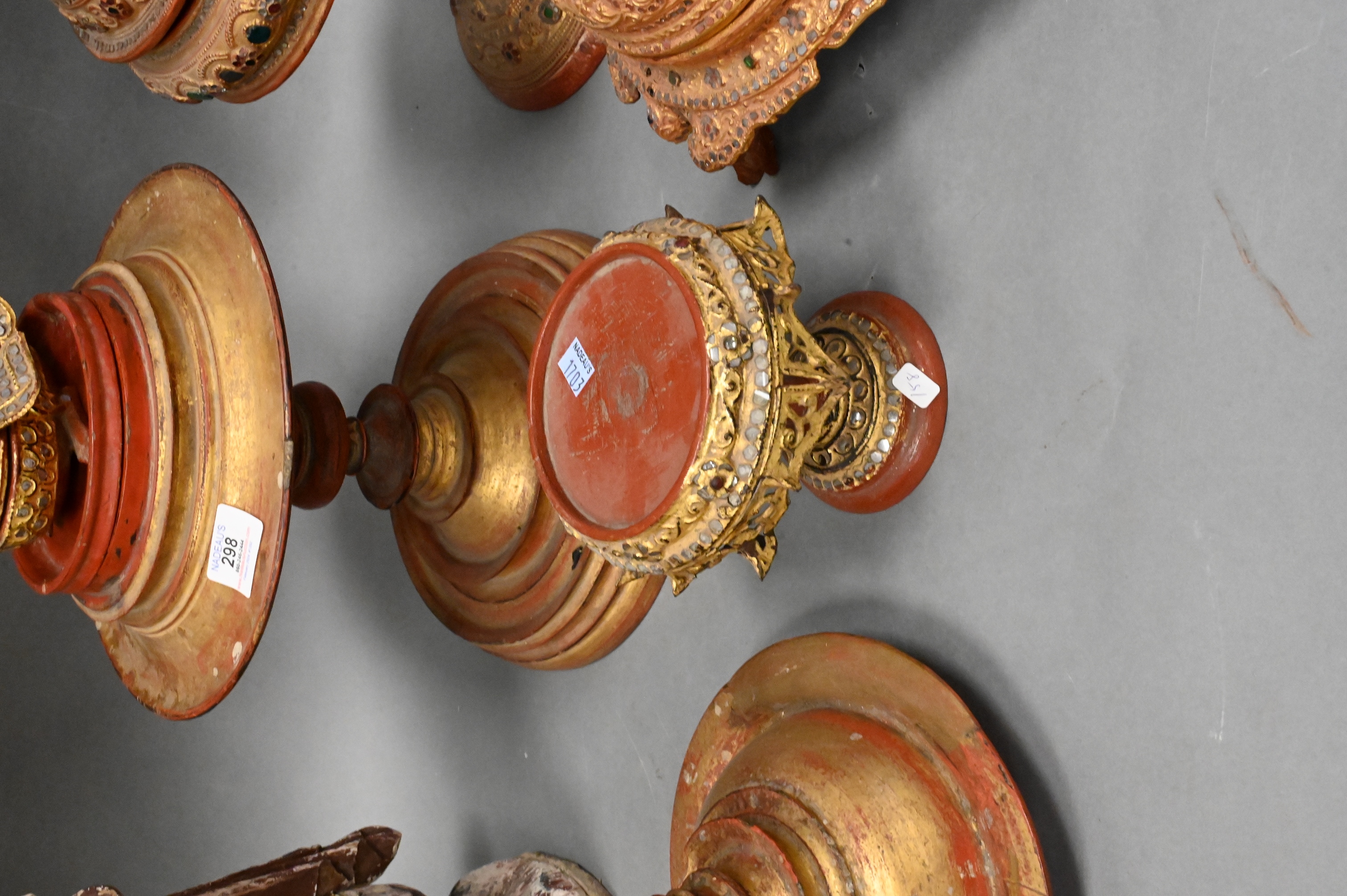 Lot 298: Six Late 19th Century Wooden and Gilt Burmese Offering Vessels and Figurine