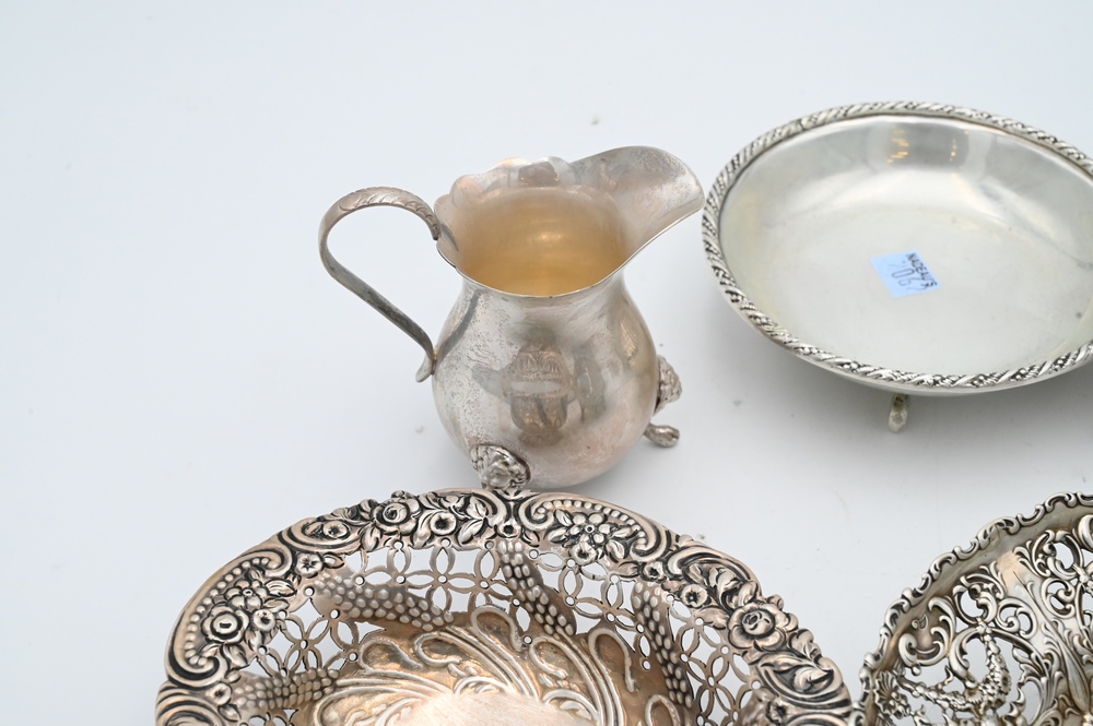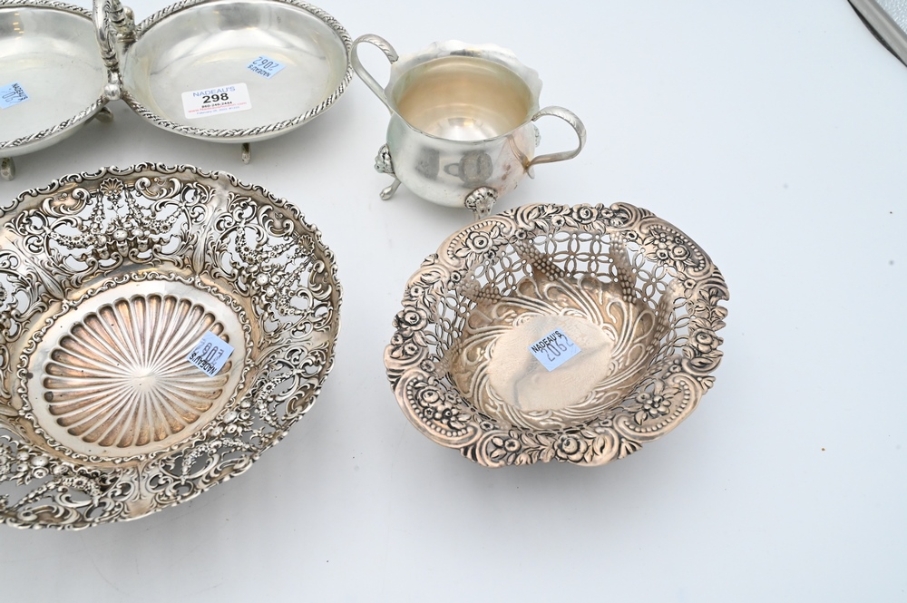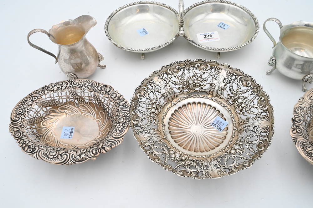 Lot 298: Six Piece Sterling Silver Lot, to include a pair of English silver reticulated dishes, 44.7 t.oz.