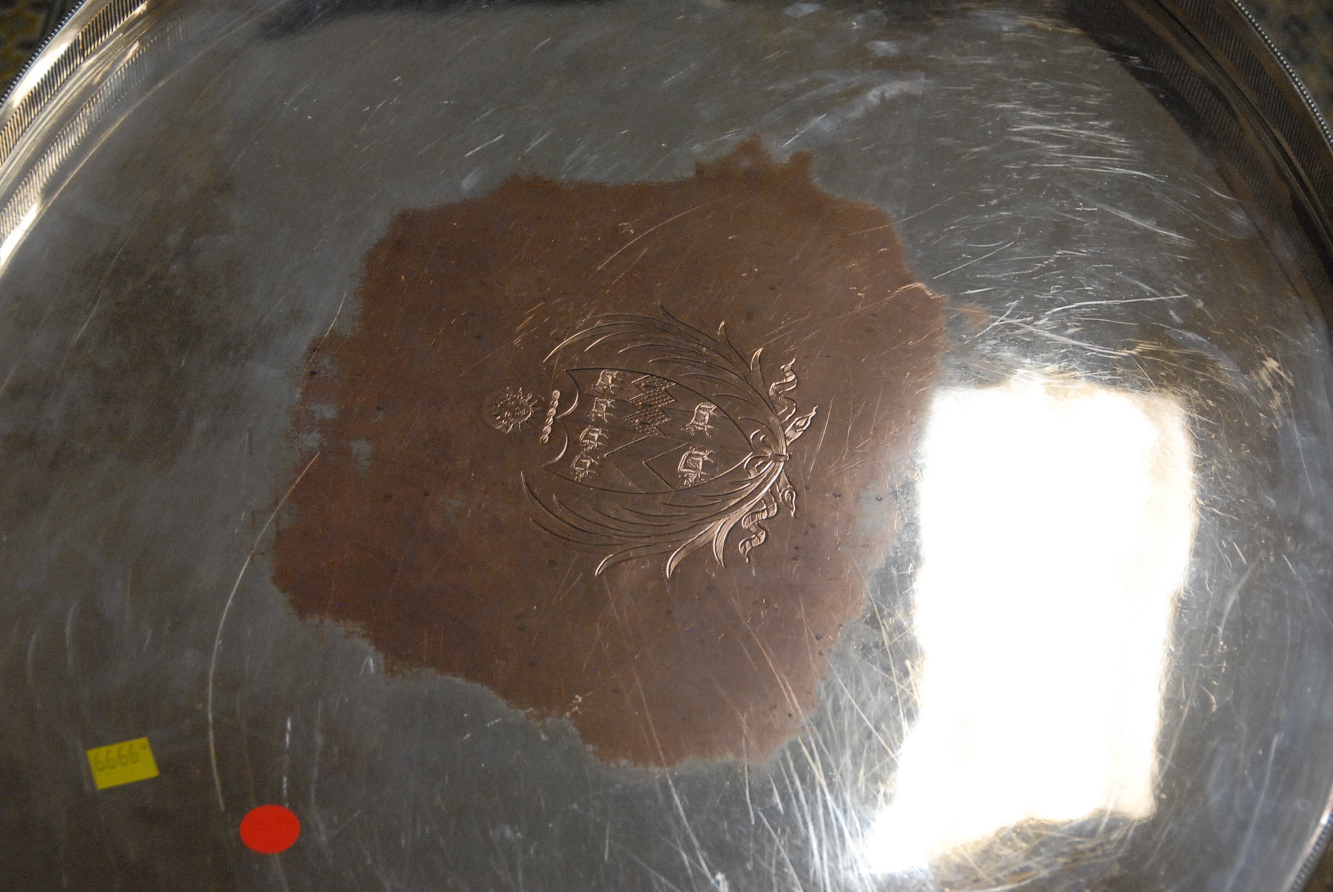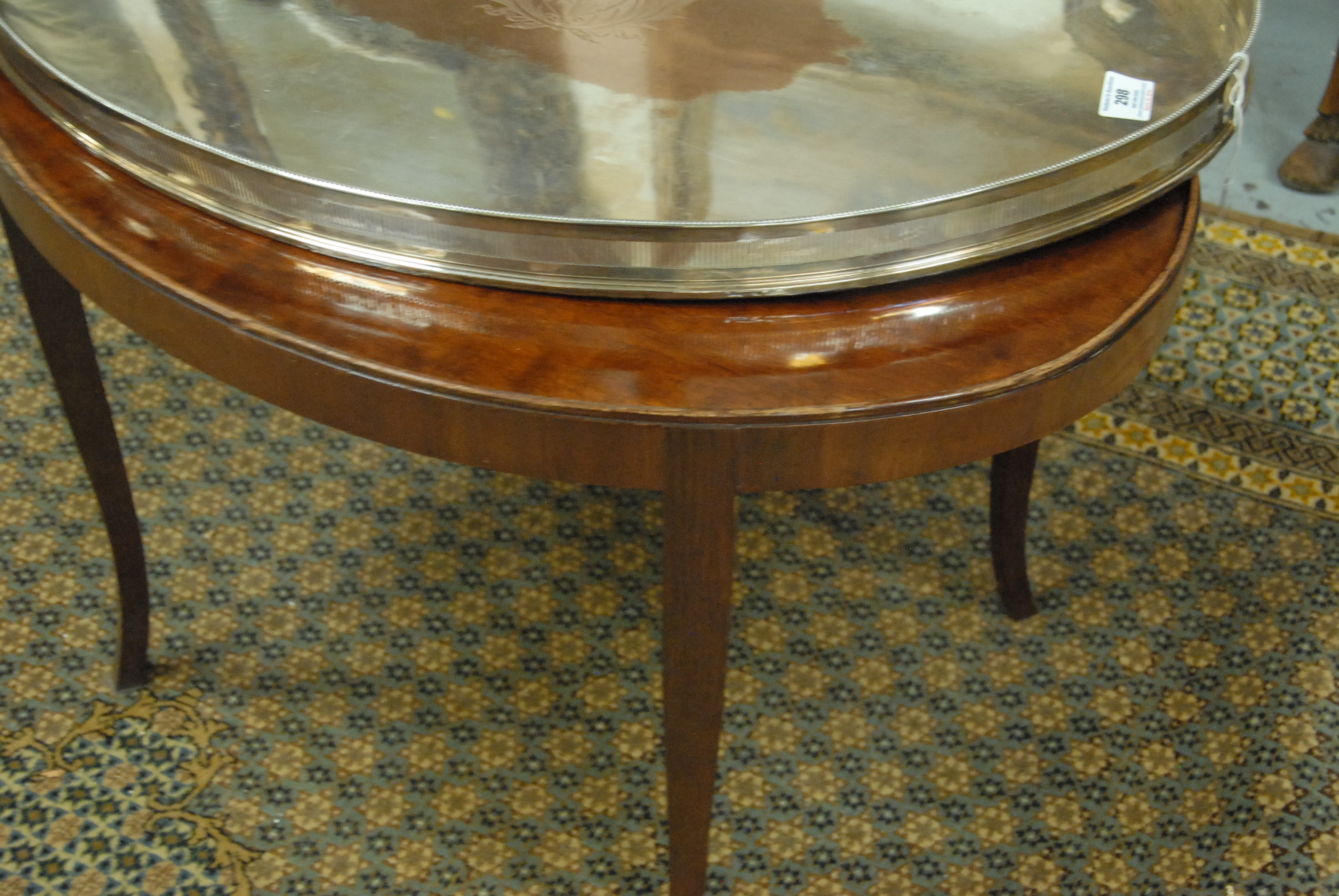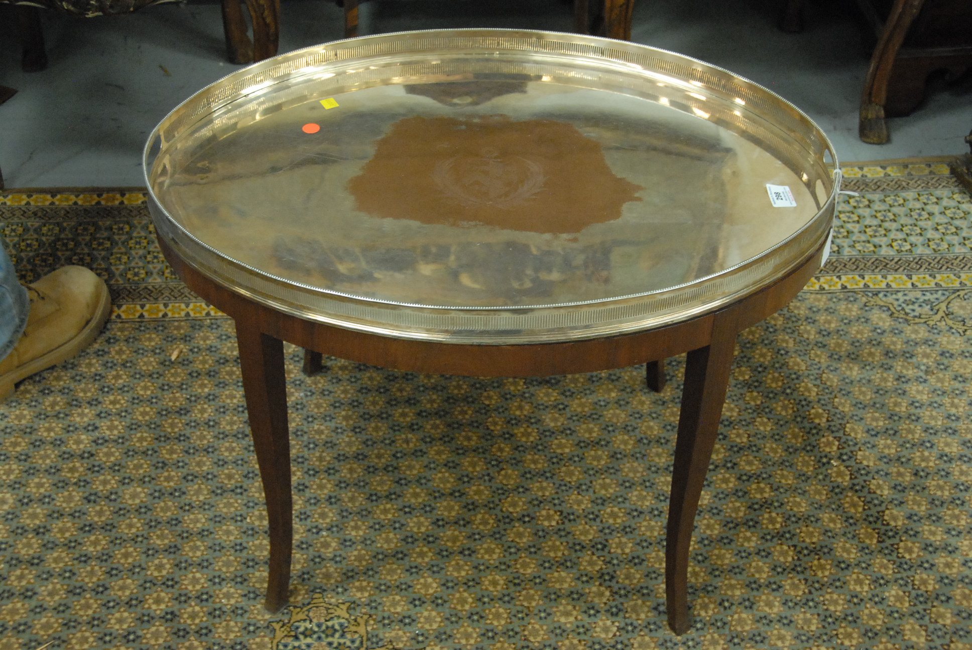 Tray top table with removable silverplate gallery tray. ht. 21in. 21 x 29