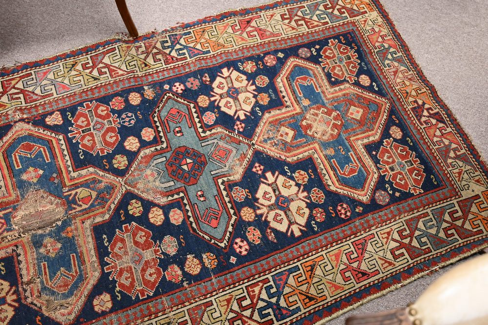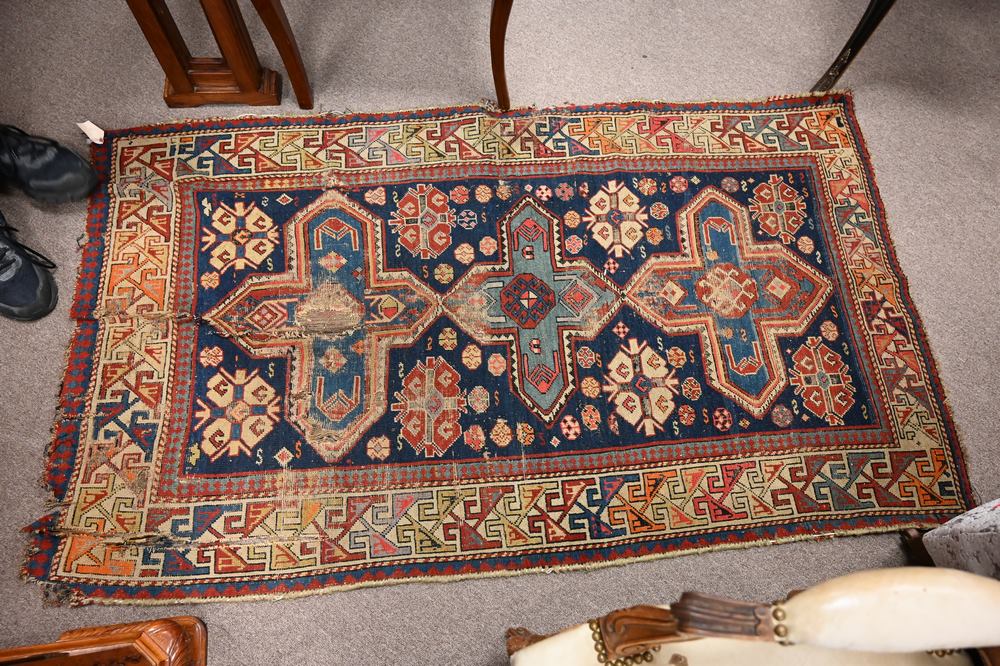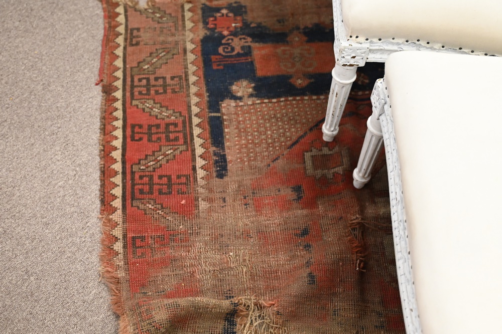 Lot 298: Two Oriental Throw Rugs, one very worn, 4′ 10″ x 6′ and 3′ 4″ x 5′ 7″.