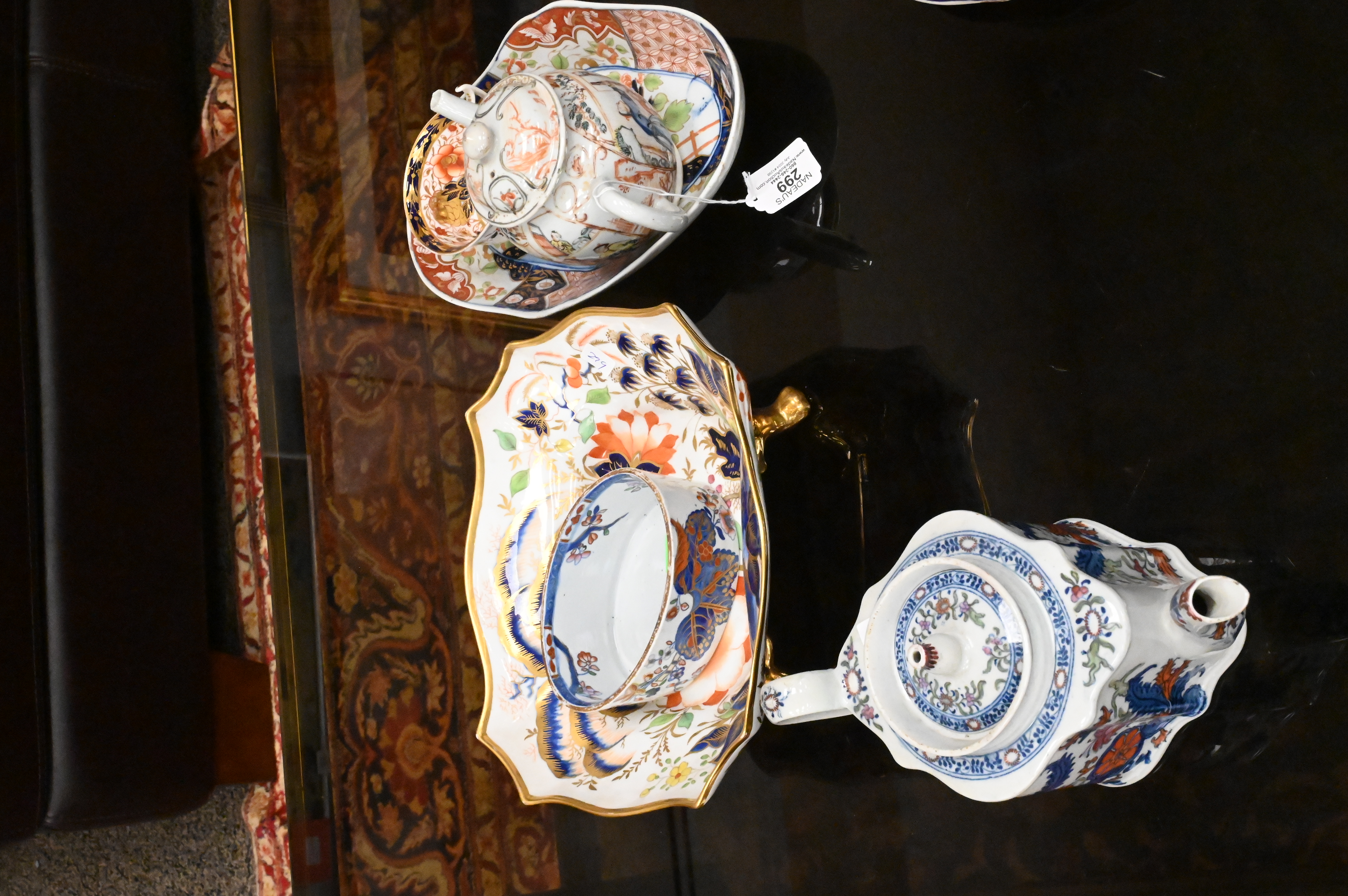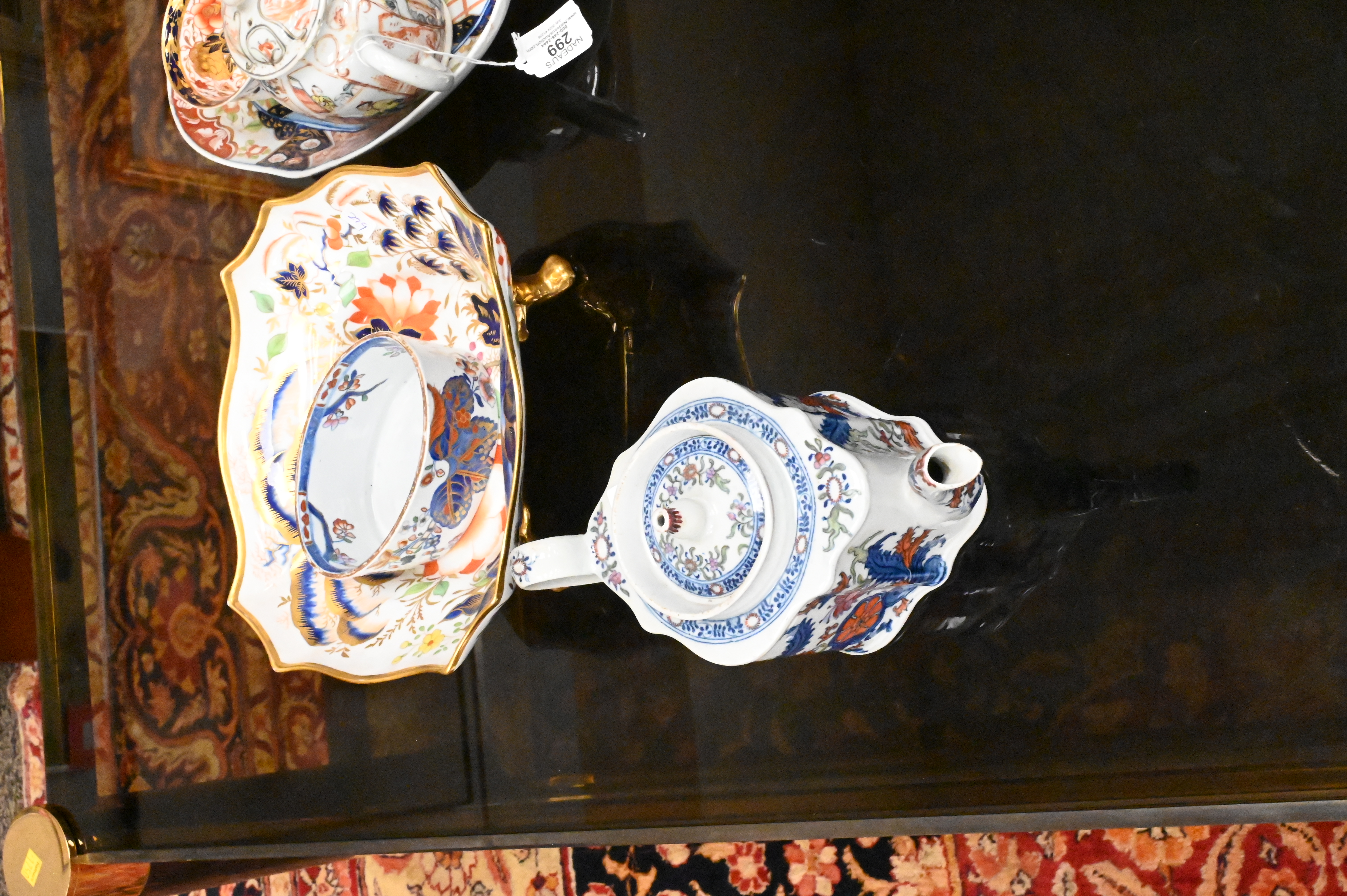 to include footed square Imari center bowl, covered tureen, plates, Chinese teapot, etcetera