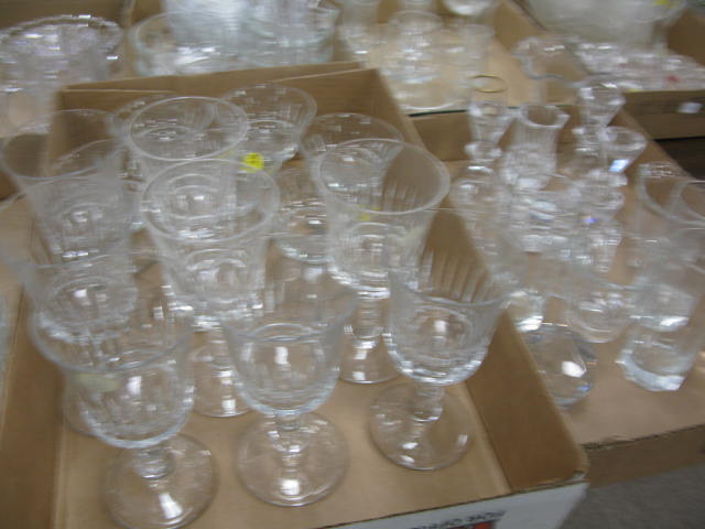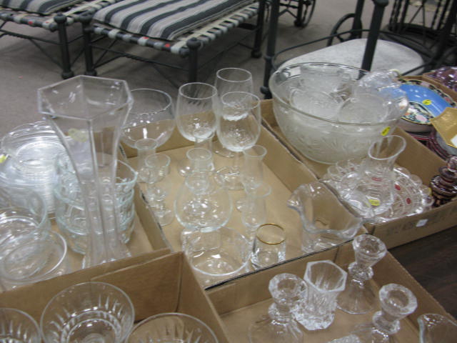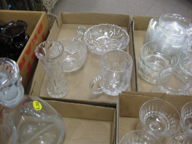 5 box lots of crystal and pressed glass to include stemware, cup, dishes, bowls, plates, clock and misc.