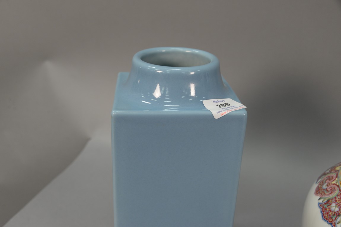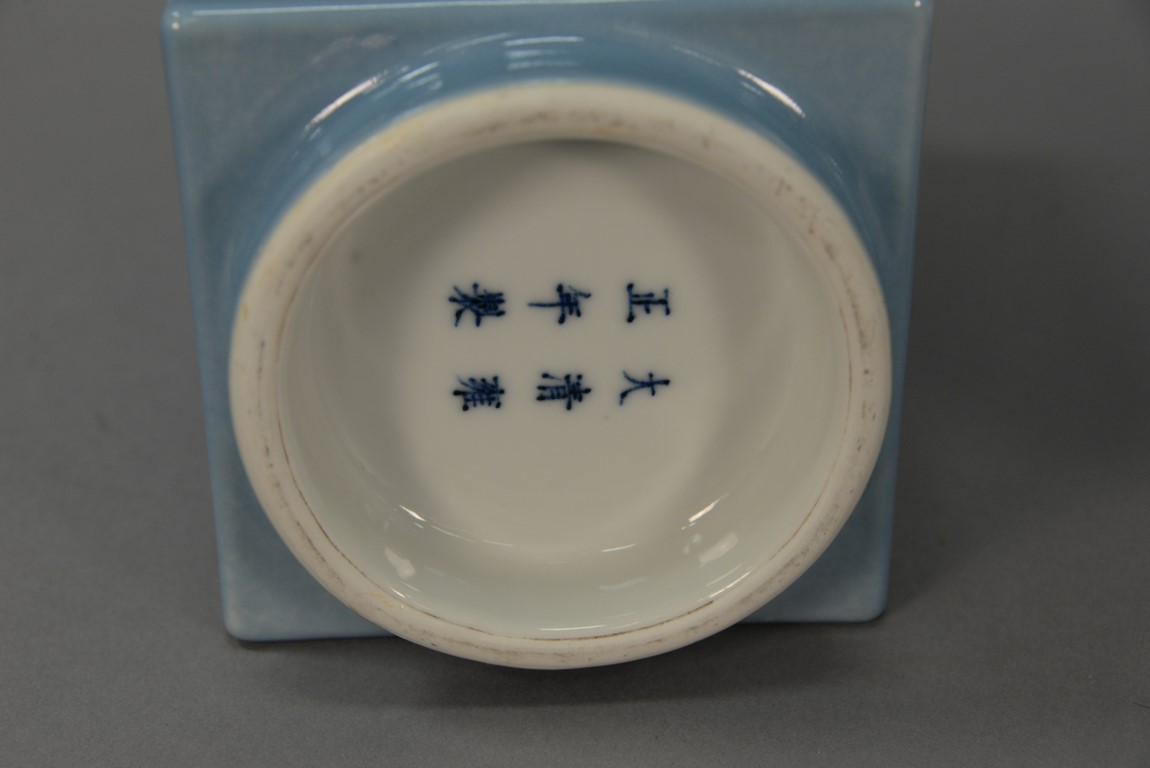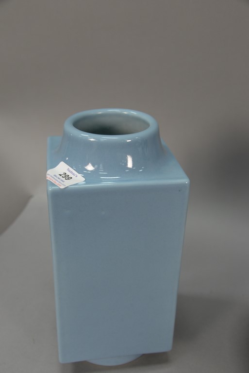 Lot 299: Chinese porcelain cong form vase, probably late Qing Dynasty, pale blue glaze, six character Yongzheng mark on base in underglaze blue